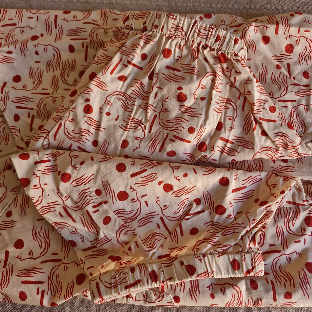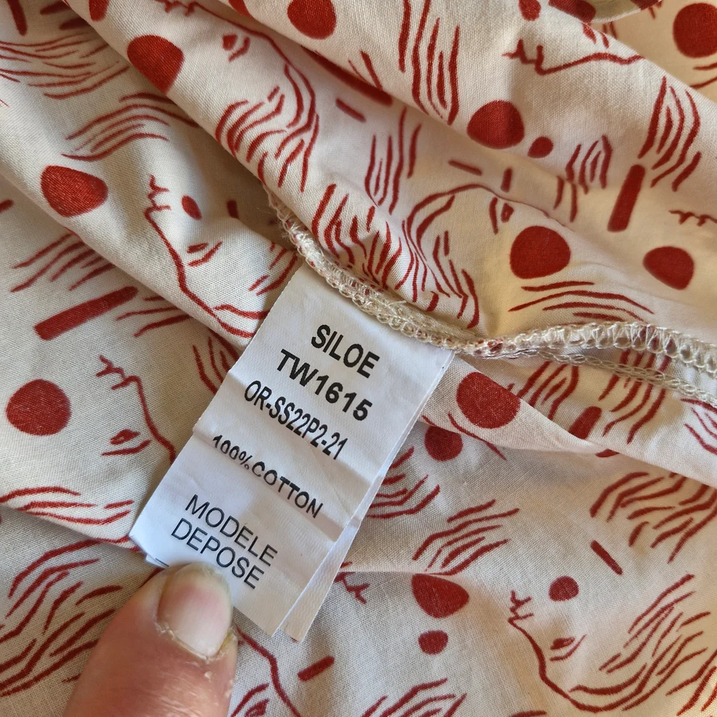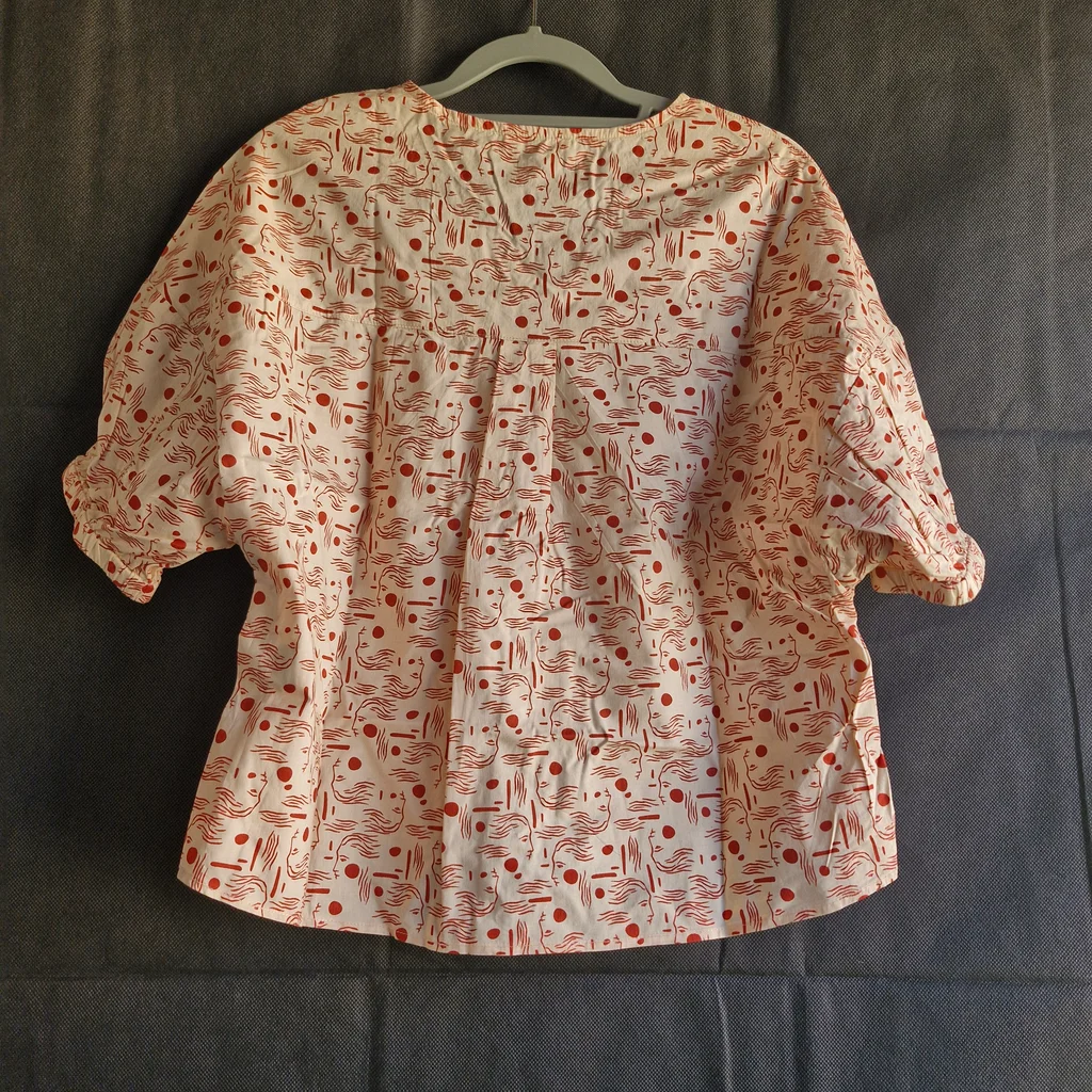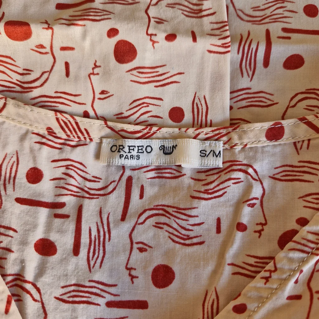 ✨ Caractéristiques : 🏷️ Marque : Orfeo Paris 👗 Style : Blouse fluide bohème chic 📏 Taille : S/M 📐 Mesures : • Largeur aisselle à aisselle ≈ 50 cm • Longueur totale ≈ 54 cm 🎨 Couleur : Écru avec imprimé rouge (visages artistiques) 🧵 Composition : 100 % coton ✨ État : Très bon état #FashionModa_femme36 #FashionModa_femme38