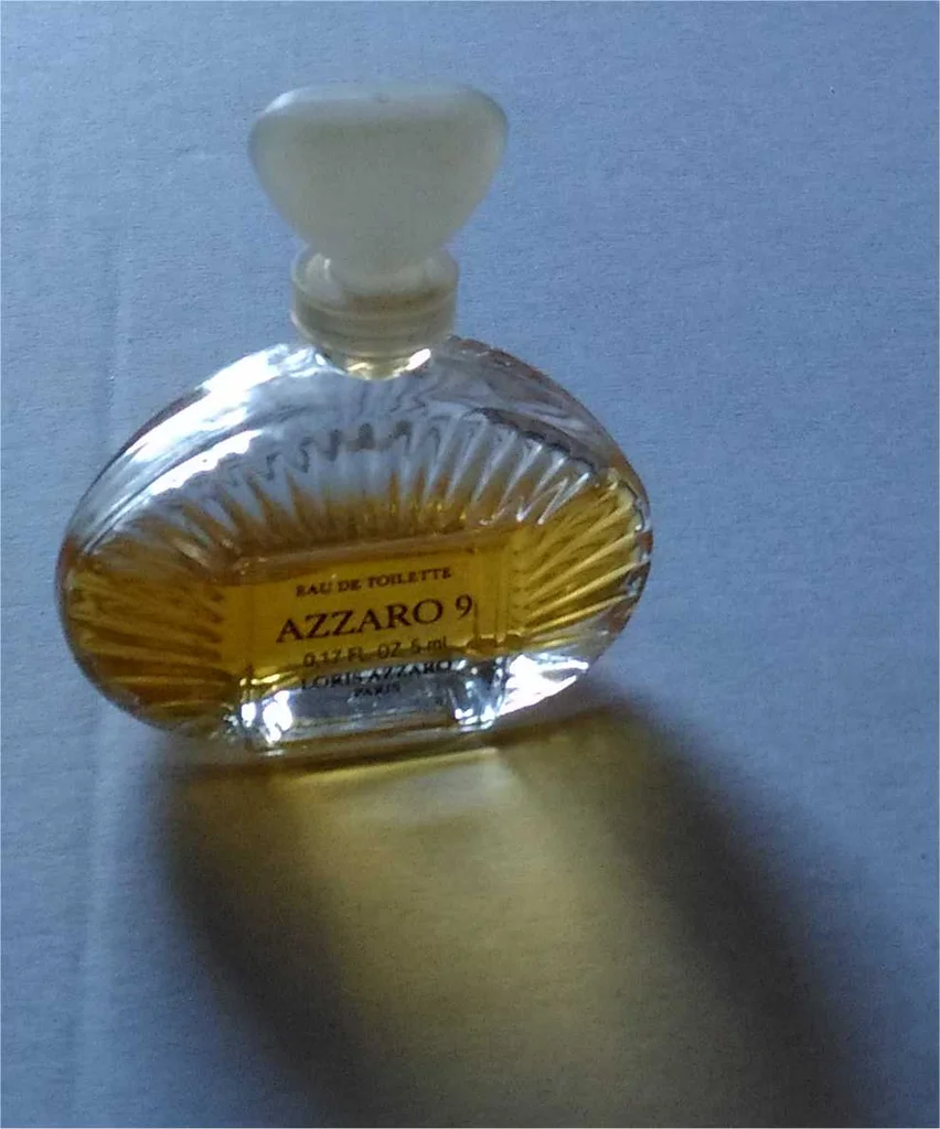 Miniature Azzaro 9 Miniature semi-pleine (reste environ 3ml) et sans boîte Contenance 5ml Hauteur de la miniature 5cm .