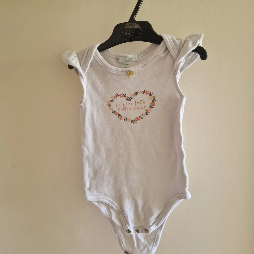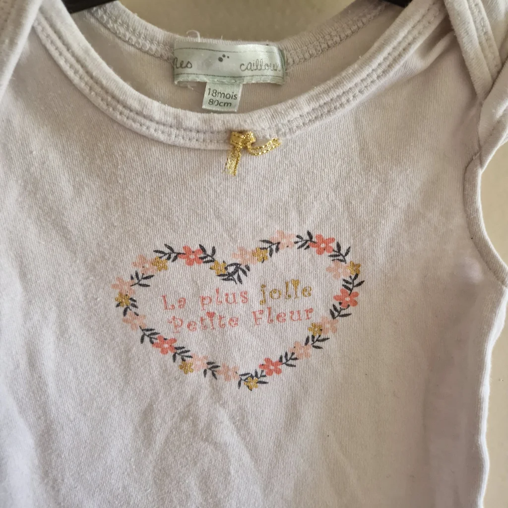 💐Négociation acceptée sur lot💐 Body sans manches La plus jolie petite fleur avec coeur fleuri Marque petits cailloux Taille 18 mois Parfait etat