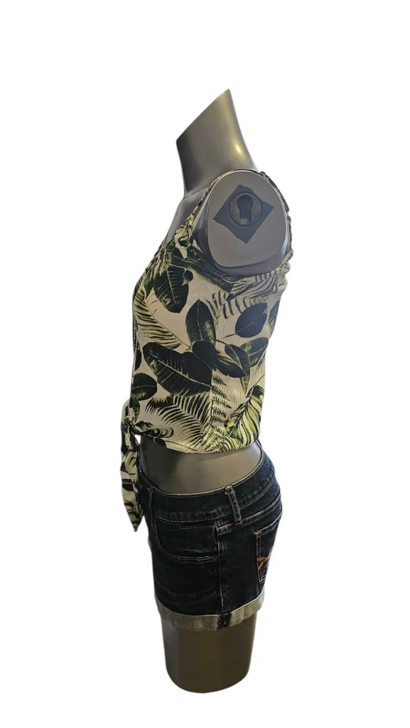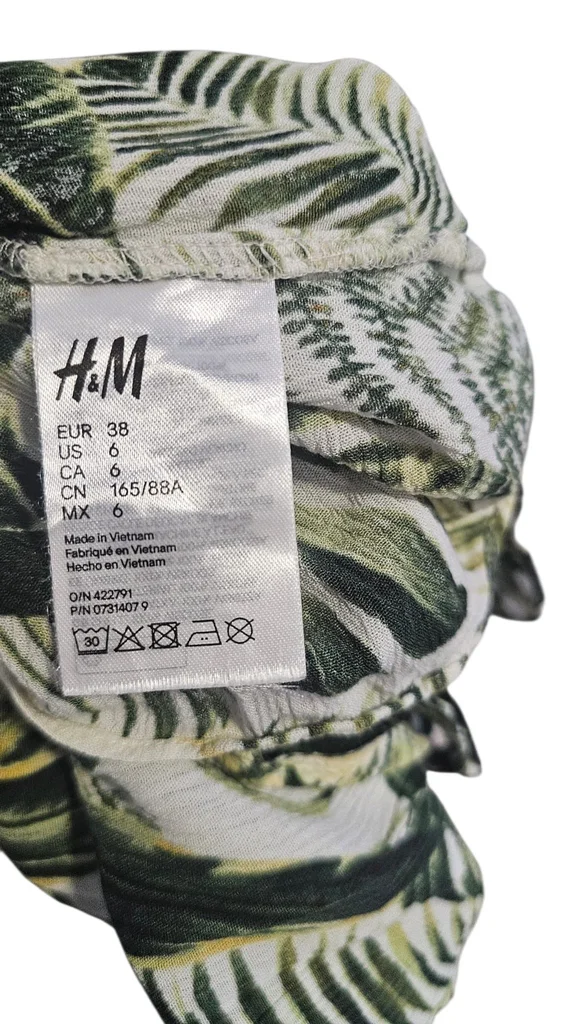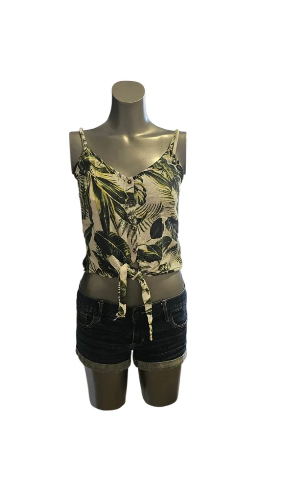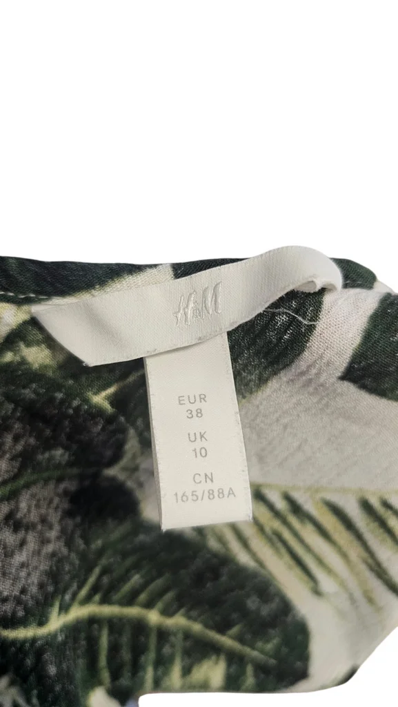 Top H&M taille 38 (M) en très bon état 🌿 Débardeur léger avec imprimé tropical (feuilles vertes), parfait pour l’été ☀️ * Coupe fluide et agréable à porter * Bretelles fines * Boutons sur le devant * Nœud à la taille (style tendance) Idéal avec un short ou un jean pour un look estival 🌴 Envoi rapide 📦 N’hésite pas si tu as des questions 😊