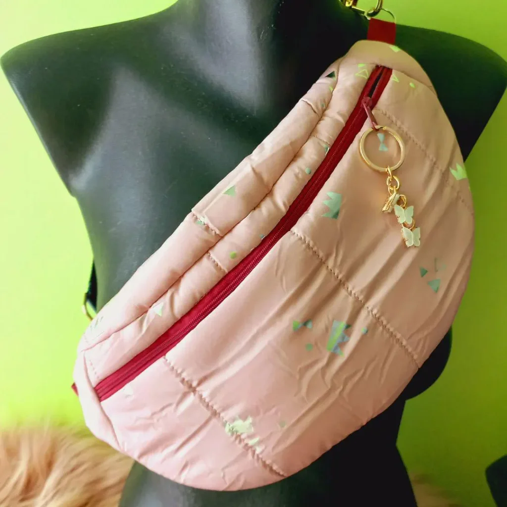 sac banane matelassé en duvet rose poudré, parfait pour un style décontracté et confortable au quotidien. - Type de produit : Sac banane - Univers : Femme - Couleur : Rose poudré - Matière : Duvet matelassé - Fonctionnalités : Bandoulière ajustable avec motif géométrique, - Fermeture zippée : zip bordeaux - Aménagement interne : Poche passepoilée intérieure - Accessoires inclus : Porte-clés charm : "3 petits papillons nacrés blancs" - Mesures : 36 cm de largeur au plus, 17 cm de hauteur, 7 cm de profondeur, au niveau du rabat supérieur Très bon état N'hésitez pas à me contacter pour plus d'informations