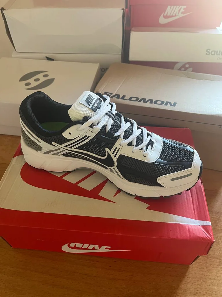 Nike Zoom Vomero 5 – Black / White / Grey Pointure : 43.5 Tige mesh noir & gris Overlays synthétiques blancs Swoosh noir outline blanc Semelle blanche chunky Languette Nike Vomero 5 Boîte Nike originale 📦 NEUF avec boîte ✅ Coloris black/white classique 🖤🤍 Vomero 5 = silhouette la + hype du moment 🔥