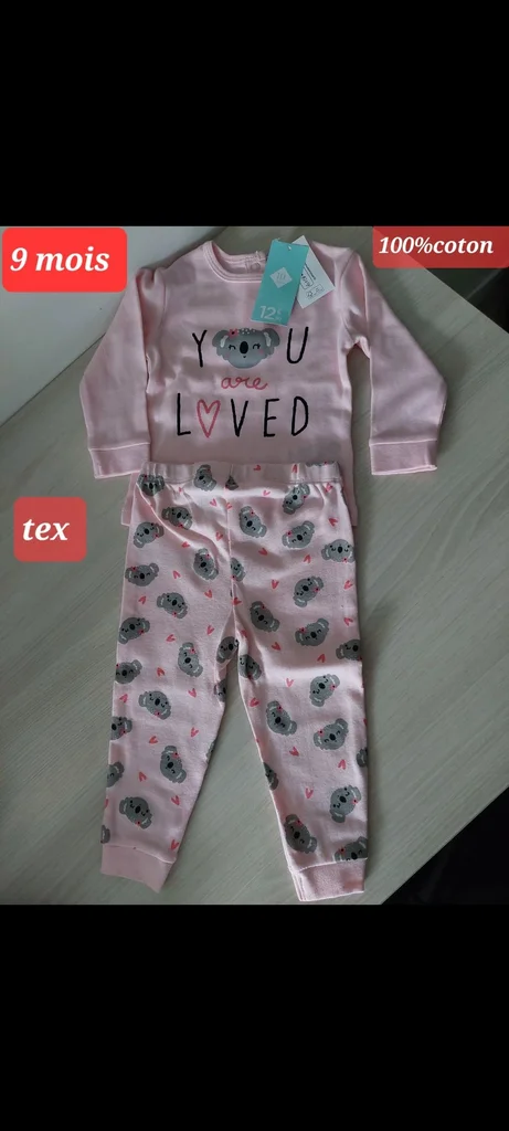 Vends Pyjama fille 9 mois Il est en très bon état et il a été mis Il y a ni trous ni tâches Maison non fumeur Il y a le prix d'achat indiqué sur la photo