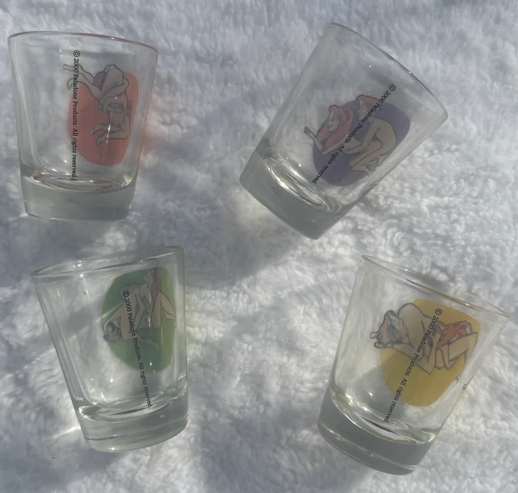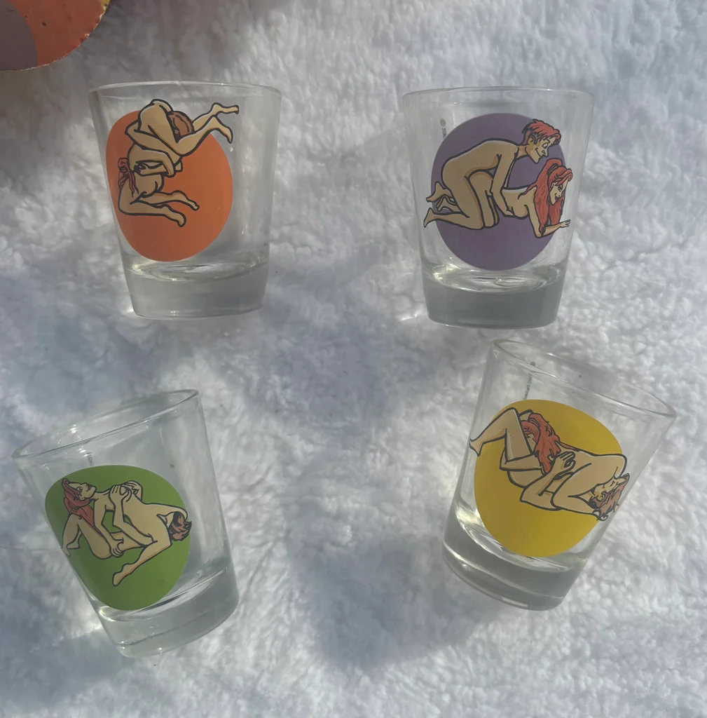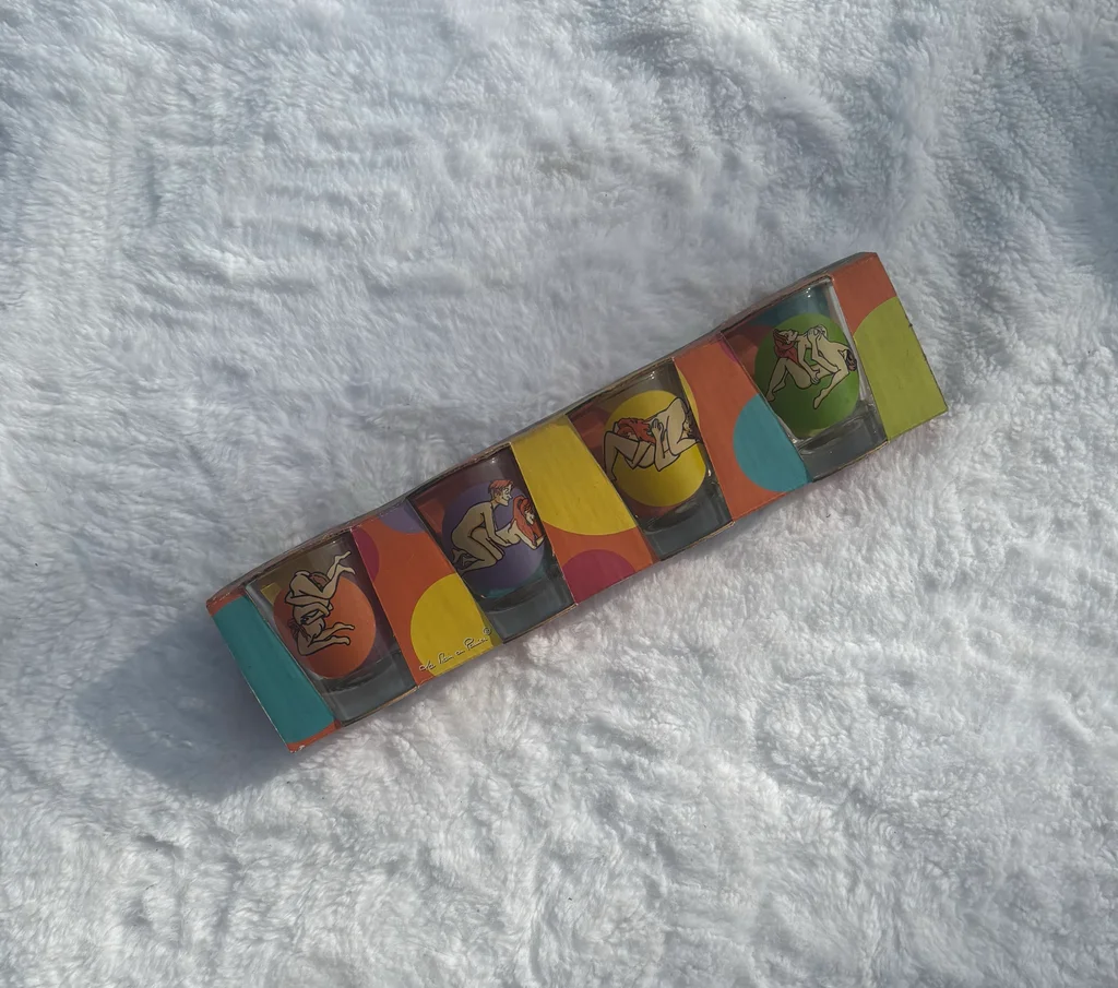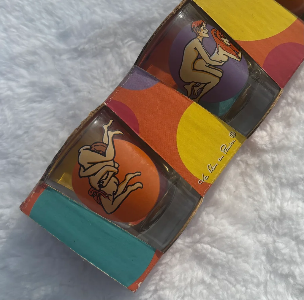 ✅ Article en parfait état (neuf) 🏷️ Marque : Paladone Products 📏 Dimensions : Hauteur 6 cm / Diamètre 5 cm 🎨 Couleurs : Verre transparent avec illustrations multicolores (orange, violet, jaune, vert) 🧵 Matière : Verre 🎀 Détails : ✨ Coffret "Verres Kamasutra" comprenant 4 verres à shot originaux 🔞 Chaque verre illustre une position différente avec un design cartoon humoristique 🎁 Idéal pour un cadeau d'anniversaire (notamment pour des 18 ans) ou pour pimenter vos soirées entre amis 📦 Article déballé uniquement pour les photos, livré dans son emballage carton d'origine 📏 Mesures : 📐 Contenance : Format shot standard 📏 Hauteur d'un verre : 6 cm 📏 Diamètre supérieur : 5 cm 📅 Édition : Copyright
