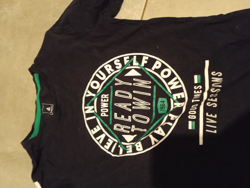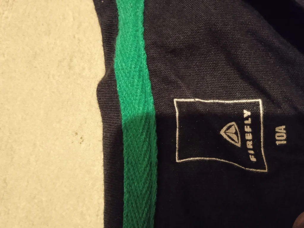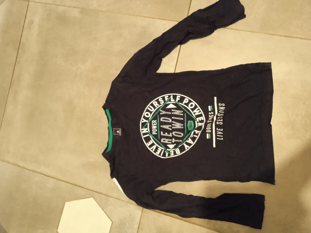 T shirt manche longue neuf couleur marine et motif blanc et vert il est superbe et impeccable. Belle qualité et belle marque firefly. Taille 10 ans. N'hésitez pas à faire des lots je suis ouverte aux prix