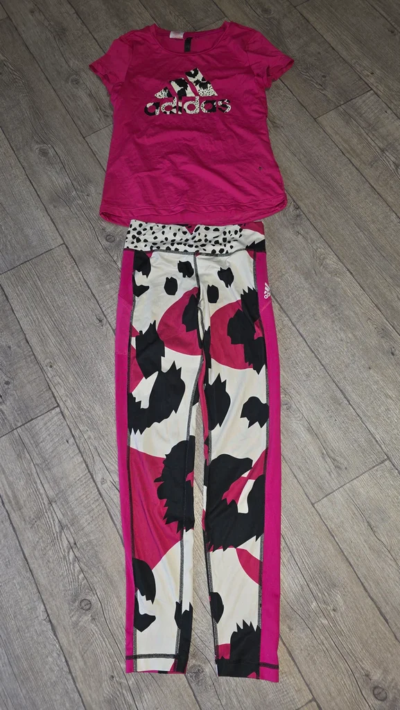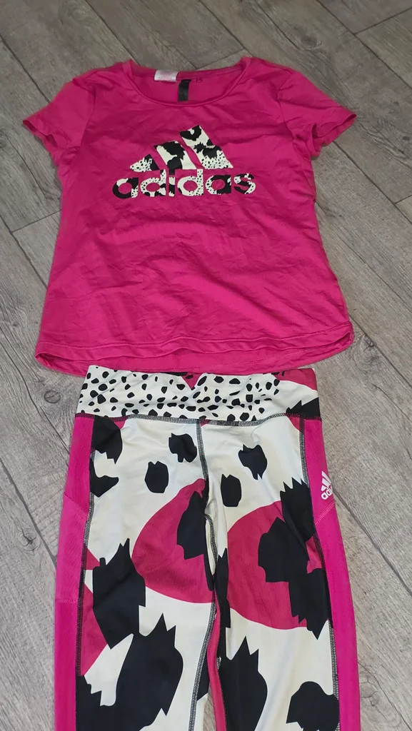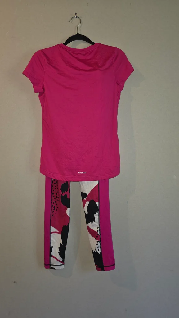 Magnifique ensemble Adidas aeroready , taille 13/14 ans . Portée quelques fois. Mais reste en très bon état. Matière : anti transpiration , léger et confortable. Idéale pour le sport ou quotidien. Couleur fushia noir beige avec motifs. 🌹 envoie rapide et soigné 🌹