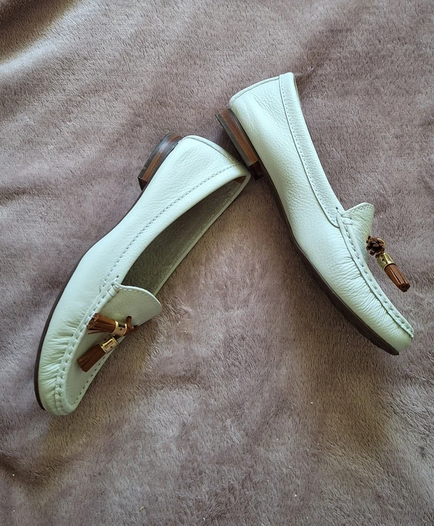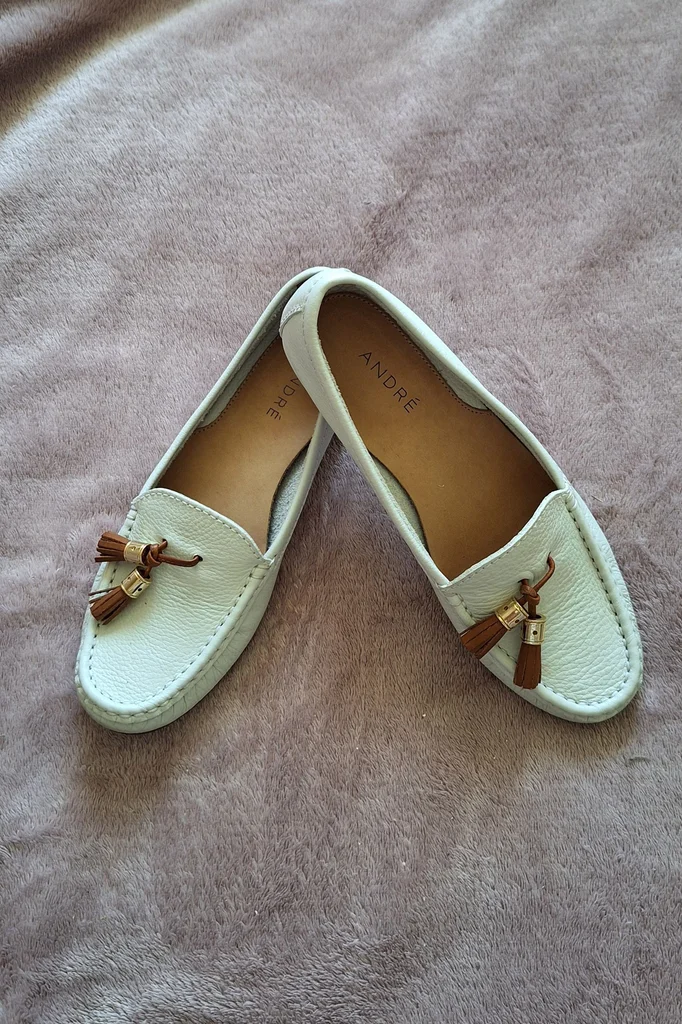 🤎 Paire de mocassins femme blanc cassé avec pompons marron. Incontournable du confort et de l'élégance décontractée, parfait pour le quotidien 🤎 🤎 Pointure 36 🤎 Hauteur talon : 1.5 cm 🤎 Matière : Cuir 🤎 Marque André 🤎 Très bon état. Portée une fois 📦 Envoi rapide et soigné