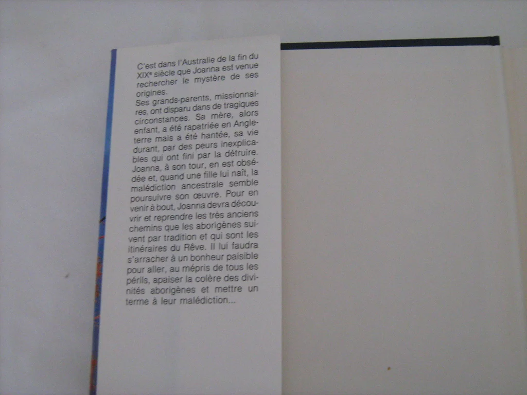 Vends livre Australian Lady de Barbara Wood. Comme neuf. "C'est dans l'Australie de la fin de XIXie siècle que Joanna est venue rechercher le mystère de ses origines. Ses grands-parents, missionnaires, ont disparu dans de tragiques circonstances. Sa mère, alors enfant, a été rapatriée en Angleterre mais a été hantée, sa vie durant, par des peurs inexplicables qui ont fini par la détruire. Joanna, à son tour, en est obsédée et, quand une fille lui naît, la malédiction ancestrale semble poursuivre son œuvre. Pour en venir à bout, Joanna devra découvrir et reprendre les très anciens chemins que les aborigène suivent par tradition et qui sont les itinéraires du Rêve. Il lui faudra s'arracher à un bonheur paisible pour aller, au mépris de tous les périls, apaiser la colère des divinités aborigènes et mettre un terme à leur malédiction ...". N'hésitez pas à consulter mes autres annonces.