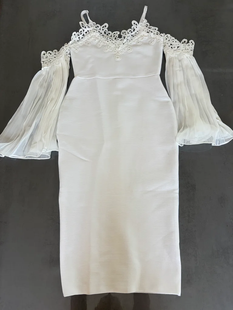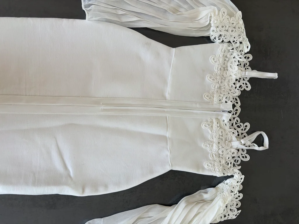 ❄️ Magnifique Robe de Soirée Blanche – Style Bardot & Dentelle Je vends cette superbe robe fourreau blanche, extrêmement élégante et travaillée. Elle offre une silhouette structurée grâce à son tissu épais de haute qualité tout en restant très romantique avec ses détails de dentelle et ses manches aériennes. ✨ DÉTAILS DU DESIGN : • Coupe : Moulante (Bodycon) arrivant sous le genou (longueur midi). • Encolure : Décolleté en V sublimé par une dentelle guipure délicate. • Manches : Style "off-the-shoulder" (épaules dénudées) avec de magnifiques manches cloches plissées en voile léger. • Fermeture : Zip invisible au dos pour un ajustement parfait. • Bretelles : Fines et ajustables pour un bon maintien. 🧵 MATIÈRE ET ÉTAT : • Composition : 95% Polyester, 5% Spandex (tissu de type "bandage" épais et gainant, non transparent). • Taille : S (36). • État : Neuve / Excellent état. #Robedesoiree #RobeBlanche #RobeMariageCivil #Dentelle #Guipure #StyleBardot #Chic #Elegant #VêtementFemme #TailleS [Description tronquée]