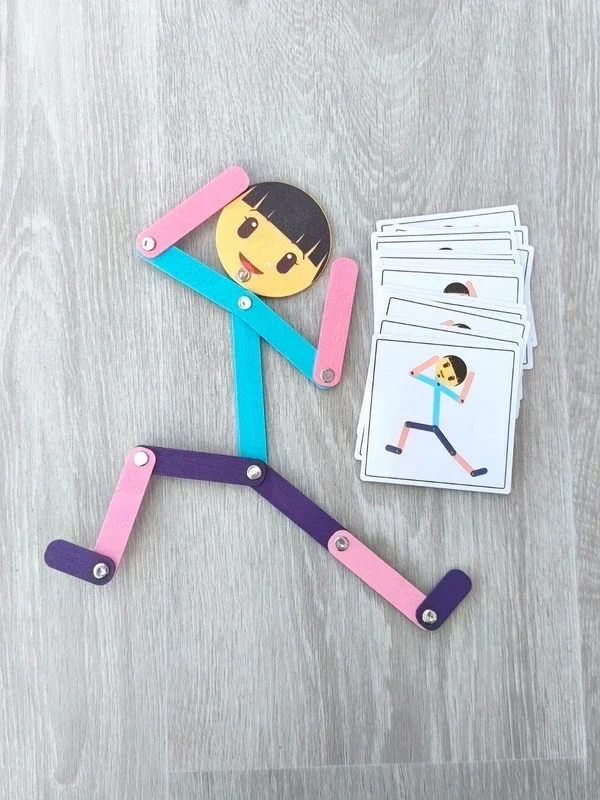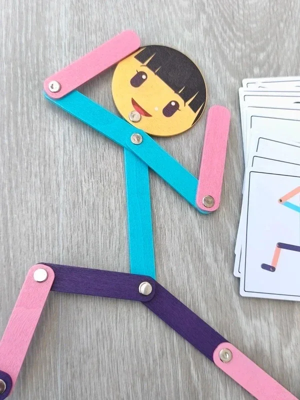 📍Le jeu est un outil d'entraînement et de développement des capacités cognitives de l'enfant. 📍Conçu pour stimuler la motricité fine et la coordination des mouvements, le jeu est composé de 24 cartes recto verso à sélectionner pour reproduire les figure sur le bonhomme en bois articulé, votre enfant pourra développer sa concentration et son habileté manuelle tout en s'amusant. 👉Pour trouver d'autres activités c'est par ici : 🔎#elisabethJeuenBois 📫⏳ Envoi rapide et soigné.