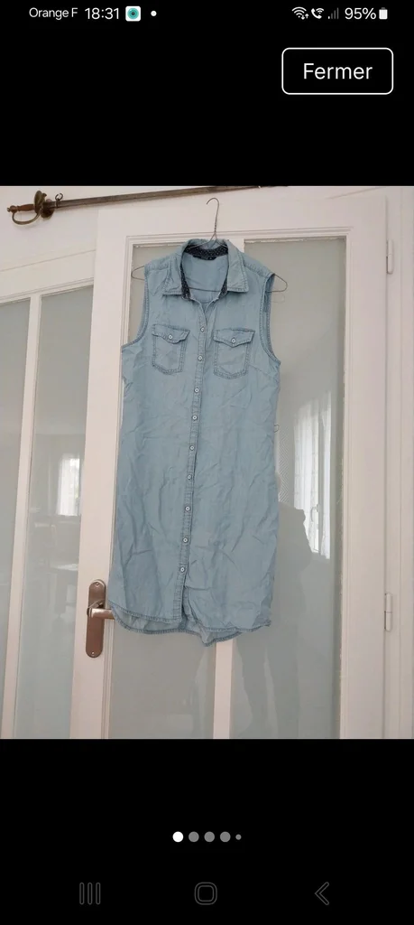 Robe bleu ciel façon jean Taille 38 avec passants pour mettre une ceinture Longueur 94 cm Aisselles Aisselles 47 cm