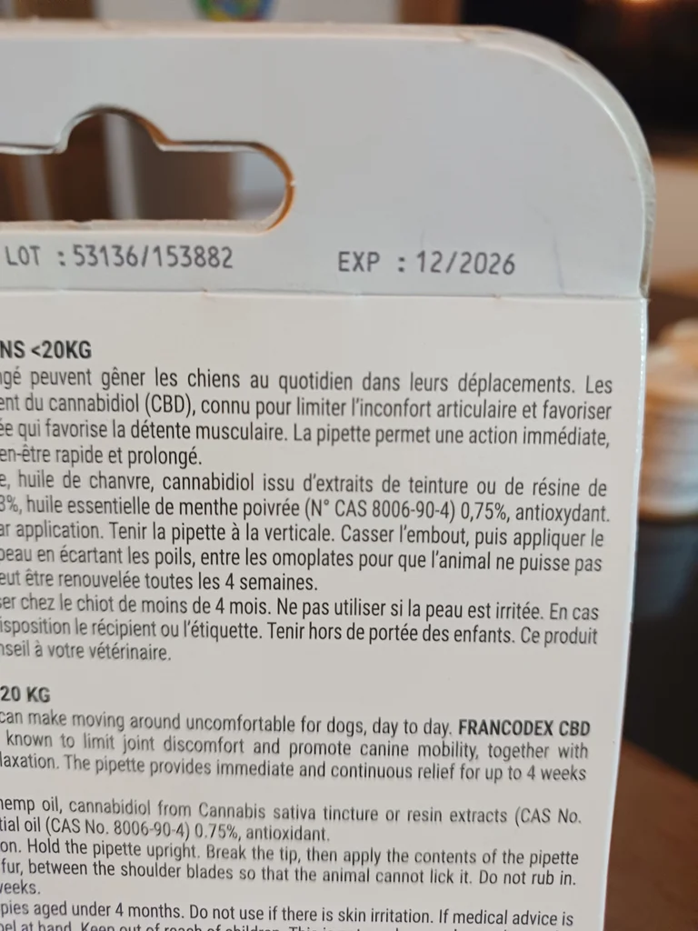 Lot de 3 pipettes neuves pour le confort articulaire de votre petit chien moins de 20kg, francodex