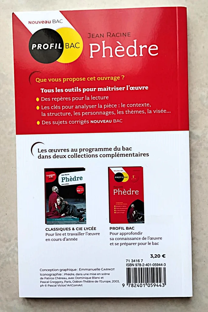 Profil Bac Livre Phèdre de Racine, résumé et repères, points de grammaire, 10 clés d'analyse, sujets corrigés