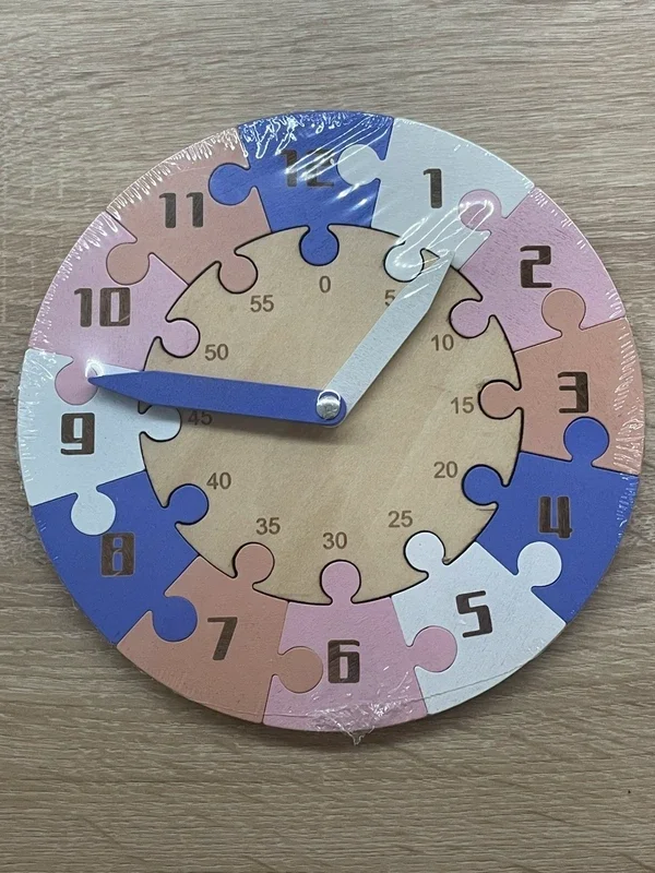 Horloge puzzle en bois 18cm de diamètre pour enfants en très bon état