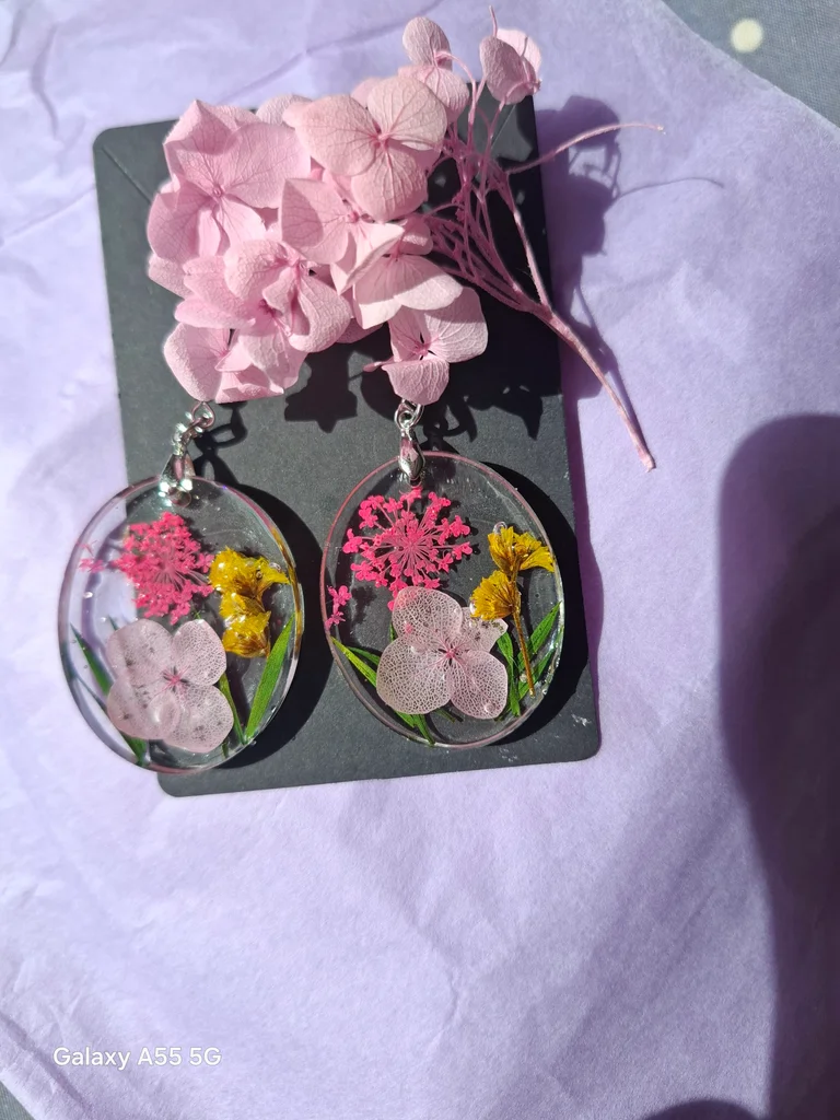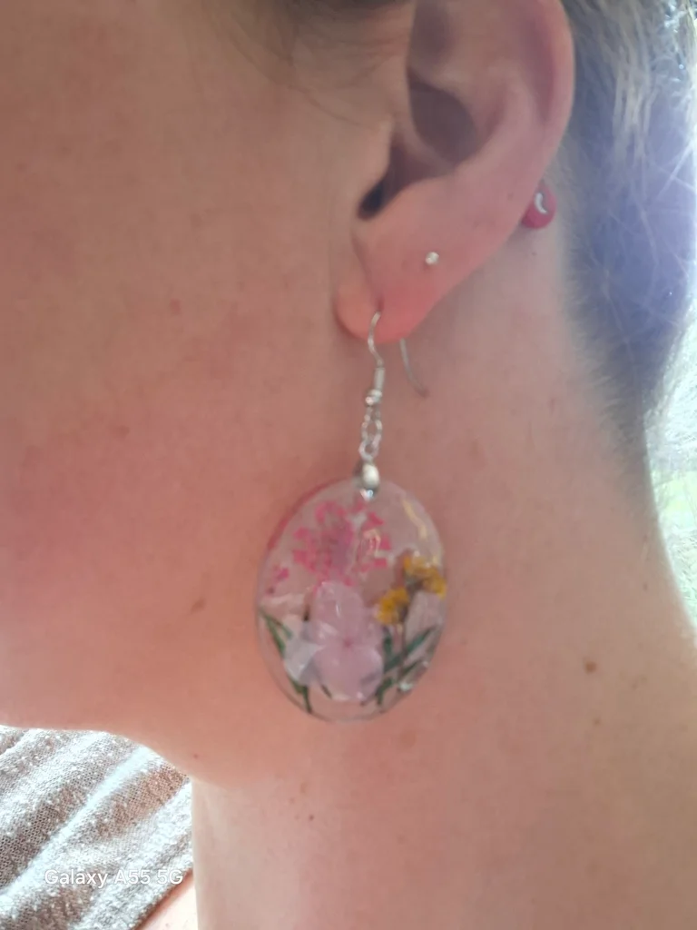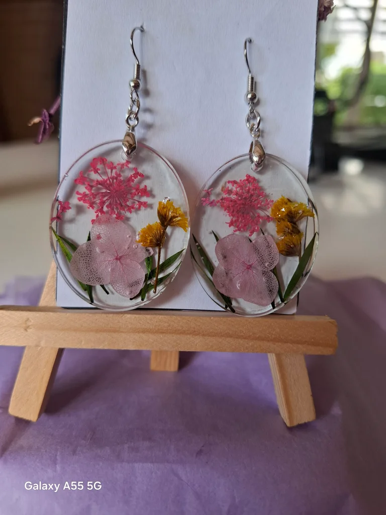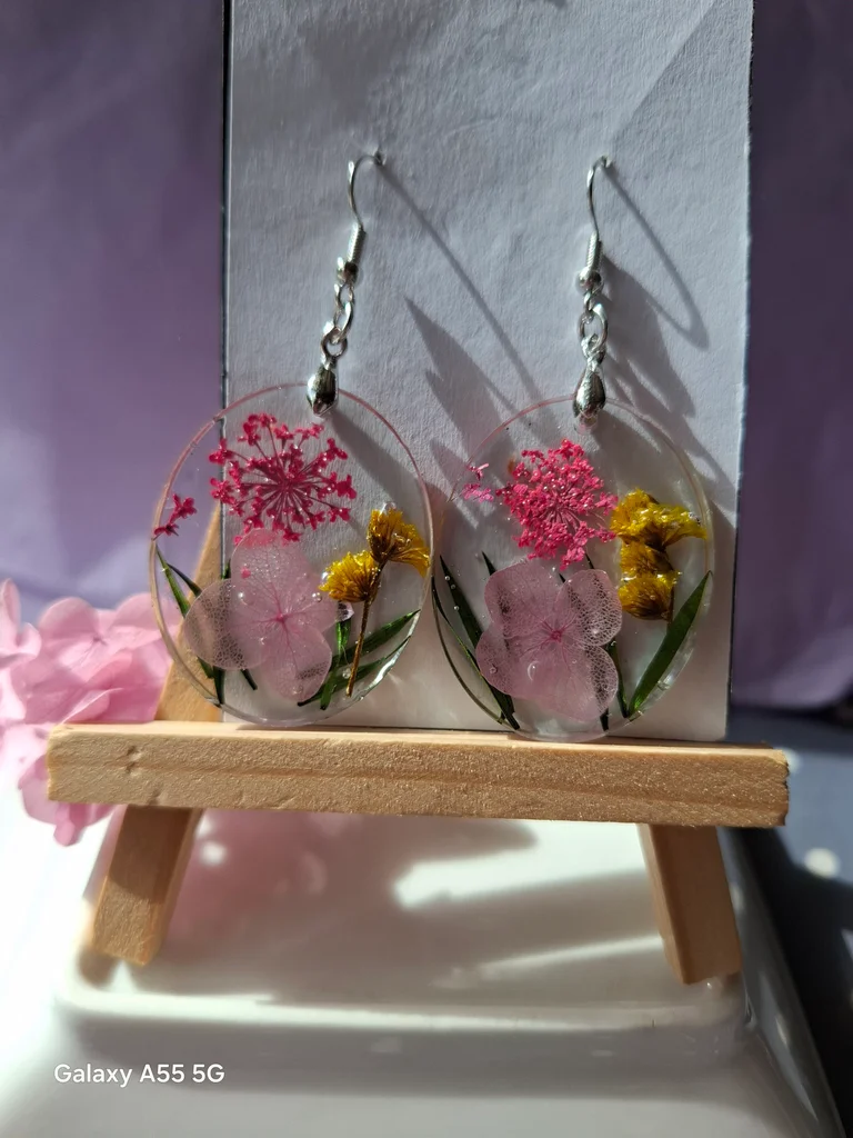 Un véritable petit jardin capturé dans la transparence… délicat, poétique et unique 🌿💗 🌸 Ces boucles d’oreilles artisanales renferment la beauté fragile des fleurs éternisées dans la résine cristalline ✨