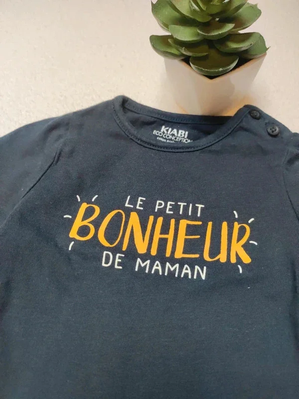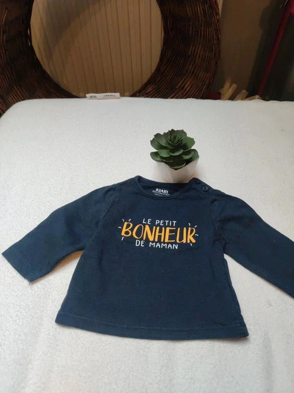 T-shirt longues manches bleu petit bonheur garçon - Taille 1 mois - Kiabi eco conception État proche du neuf