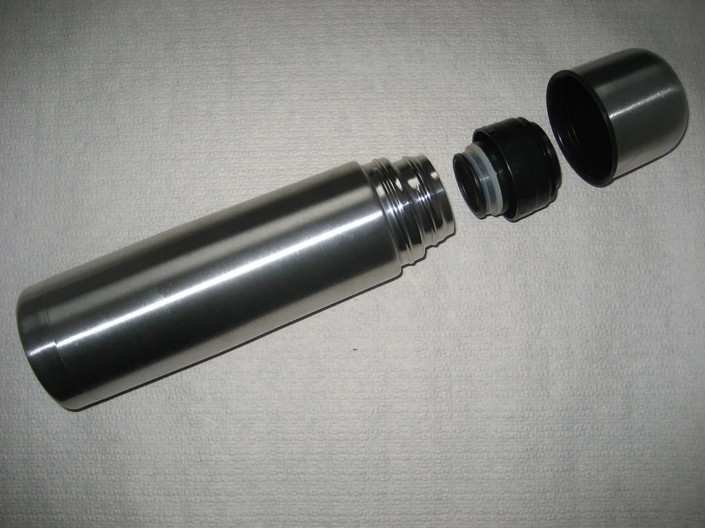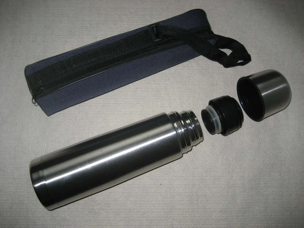 Bouteille isotherme inox 0,9L , couleur argentée, Bouchon , bouton pressoir - Hauteur : 28 cm , diamètre : 8 cm - livrée avec housse de transport à fermeture éclair. Article NEUF , n'ayant jamais servi. Possibilité d'envoi.