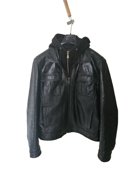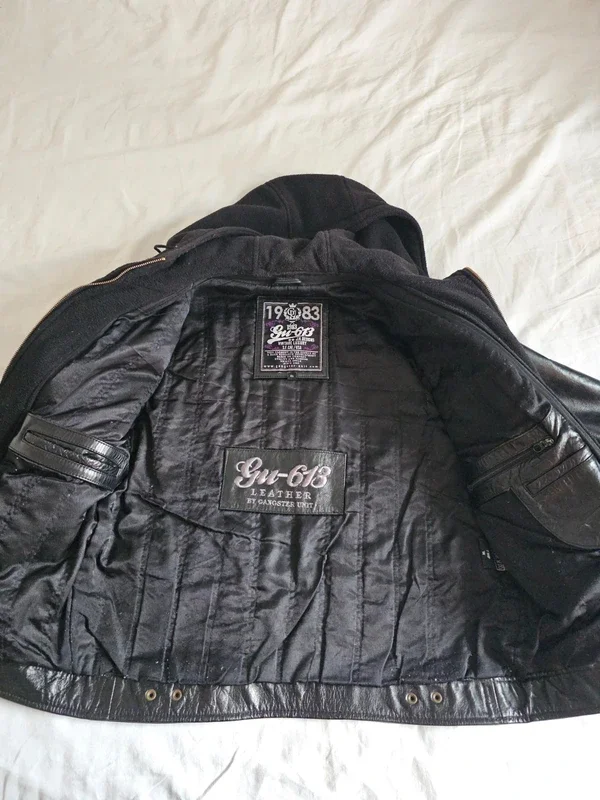 Blouson noir, cuir 100% Buffle 🐃 , marque Gangster Unit, modèle 613, capuche et polaire amovible (fermeture éclair), cuir buffle très résistant et increvable, poids 2 kg, en parfait état, aucun accroc ni éraflure, donnant un look streetwear / casual très stylé. Parfait pour la moto aussi. Taille XL. #blousoncuir #CuirGangsterUnit613 #cuirBuffle #blousoncuirnoir #blousoncuirhommetailleXL #blousoncuirGangsterUnit613