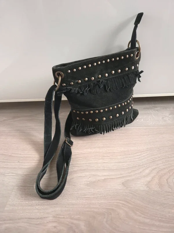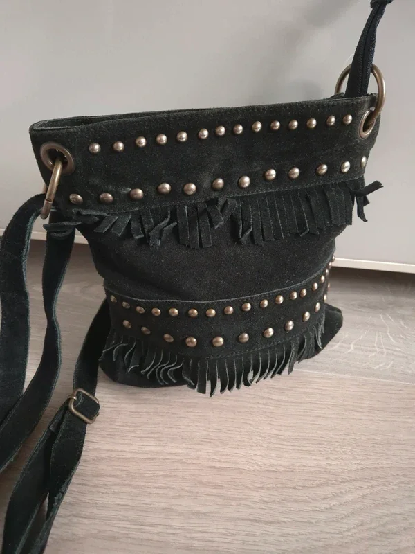📌 20% de remise pour l'achat de 4 articles, suite ... Sac bandoulière noir en cuir , avec des franges et des clou argenté, petit et pratique, parfait pour y mettre que l'essentiel ! ➡️100% Cuir ➡️ Dimension 24 cm x 27 cm x 1 cm ⭐ Excellent état ✈Envoi rapide des colis 💗 Abonnez vous à mon profil, nombreux articles ajoutés régulièrement ! 🌸 Tapez Laetitresors pour voir mes annonces #laetitresors_sac #sac #bandoulière #cuir #pochette #clou #argente #frange #tissaia #laetitresors