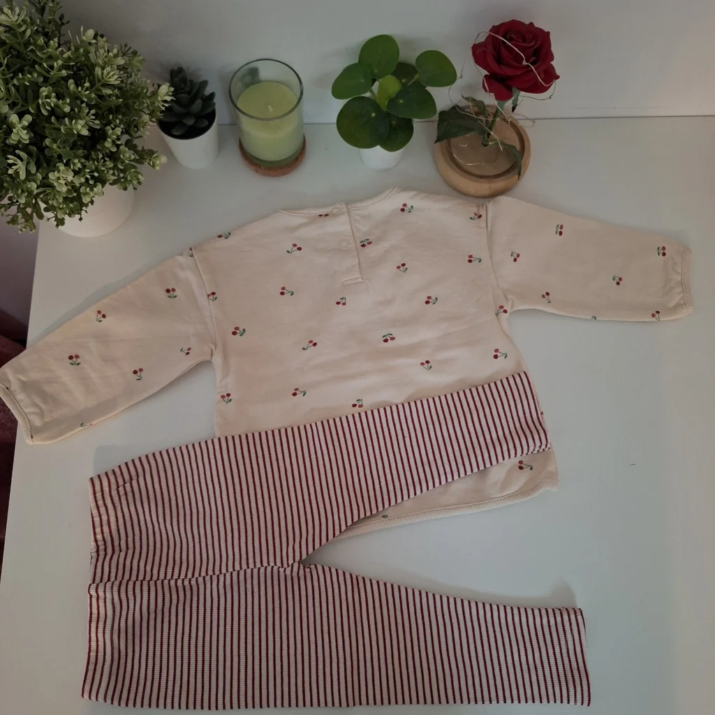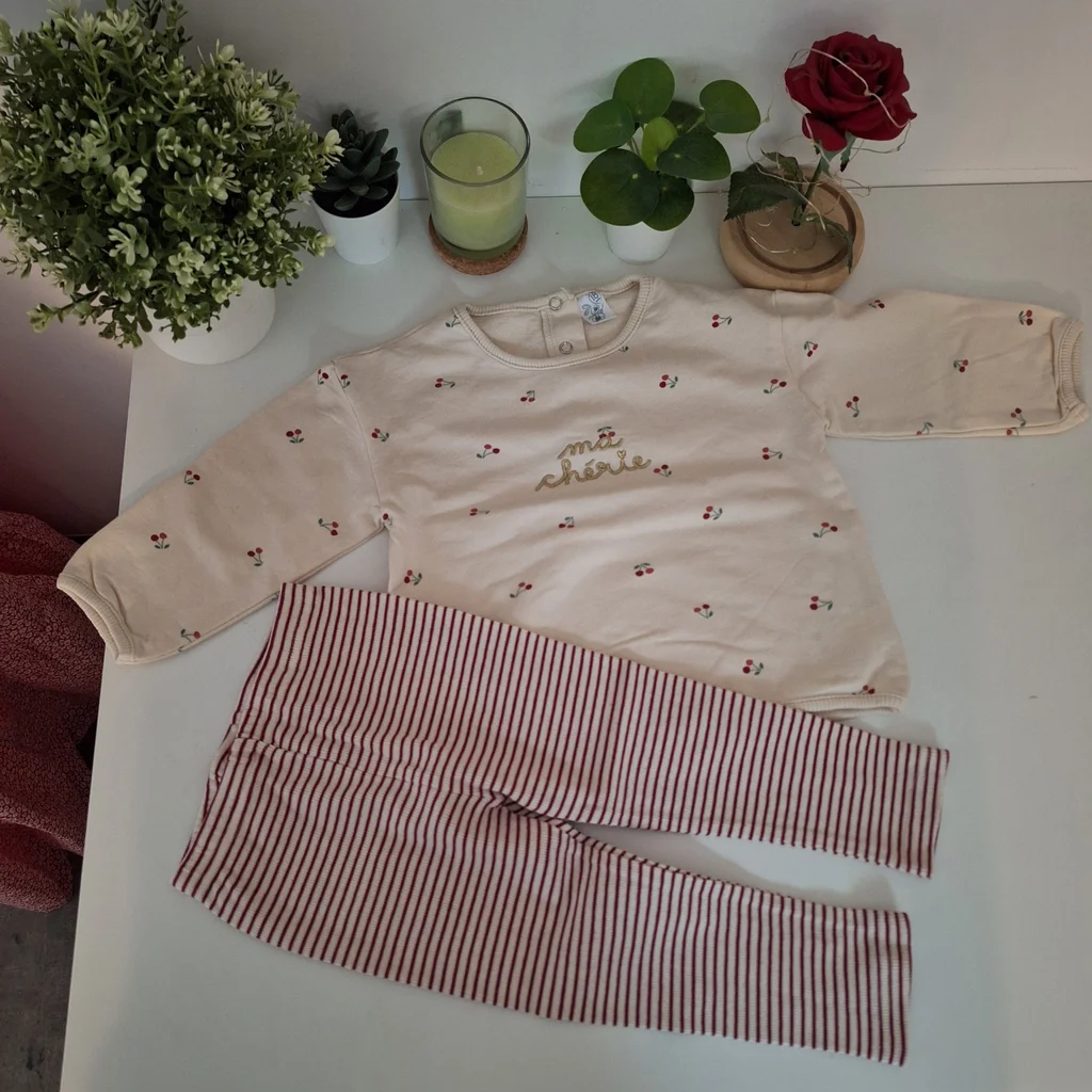 Ensemble tee-shirt manches longues et legging beige crème rouge Taille 18 mois