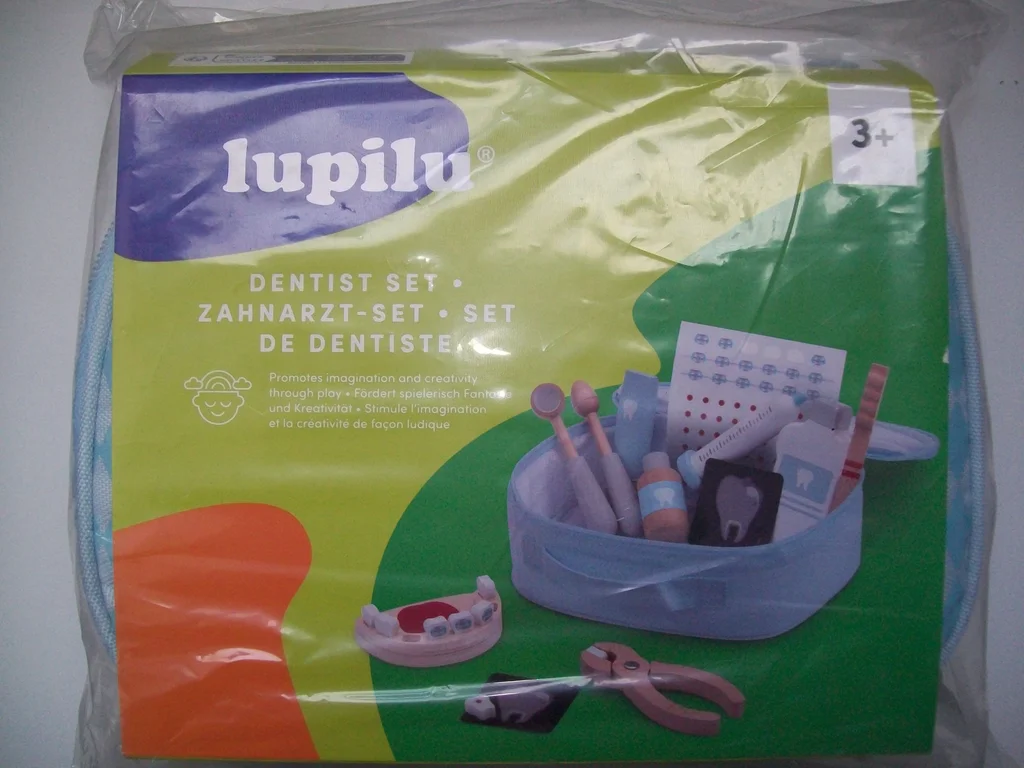 Set de dentiste " LUPILU " comprenant accessoires ( bois ) et mallette de transport. - Stimule l'imagination et la créativité de façon ludique des enfants à partir de 3 ans. * Article neuf, non déballé de son emballage plastique. * Possibilité d'envoi.