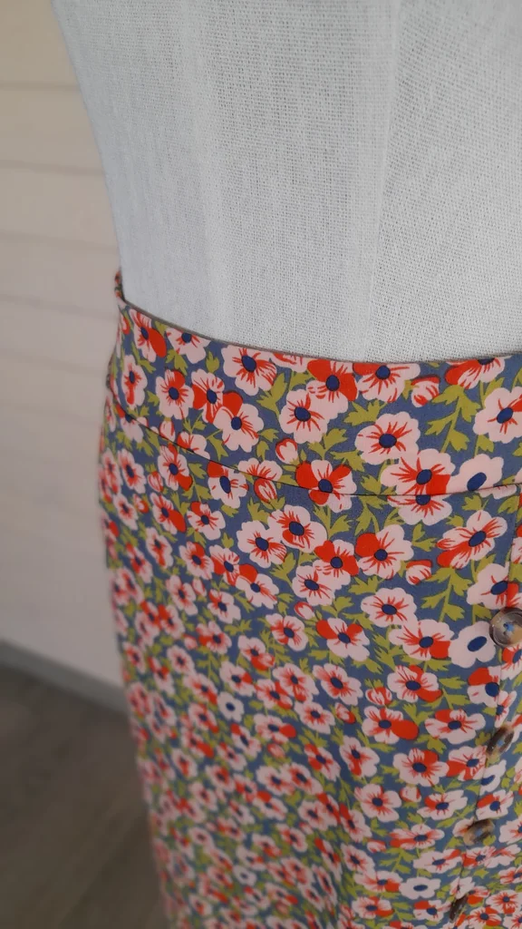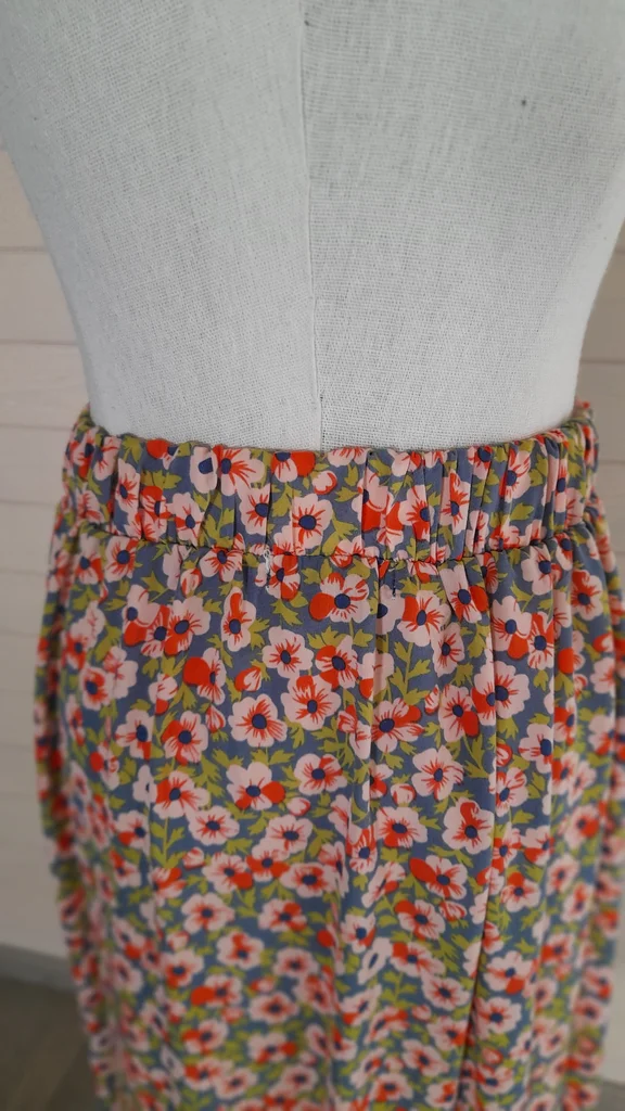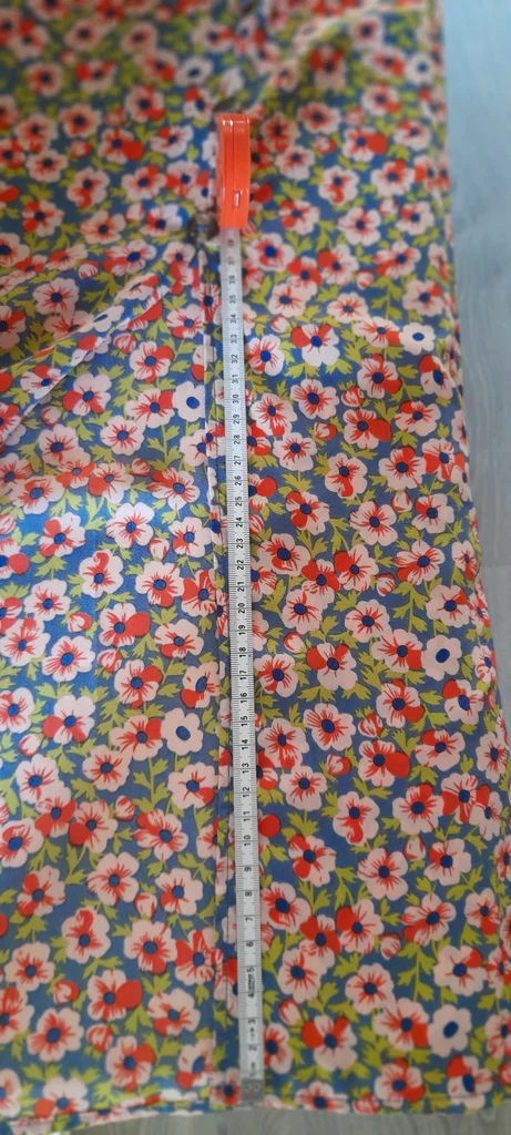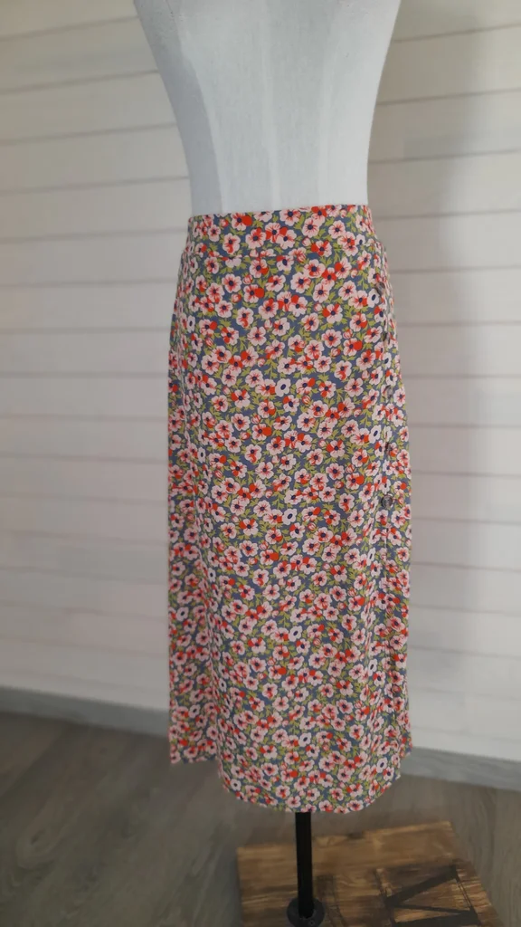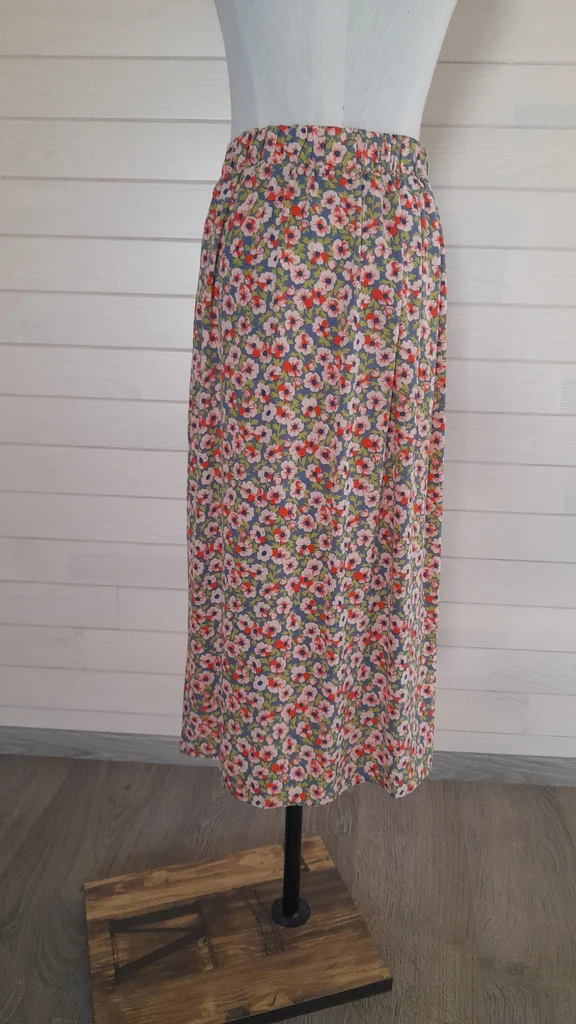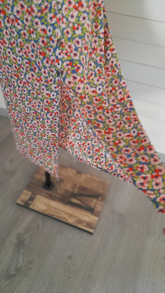 Jupe longue fluide et légère avec une fente de 38cm. 4 boutons d'ornement. Taille élastique sur l'arrière. Étiquette 36/38, convient plutôt à une taille 36. Non doublée.
