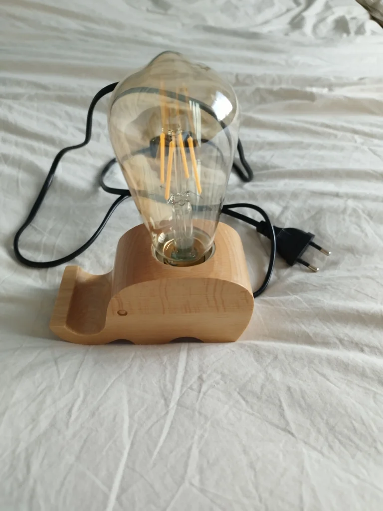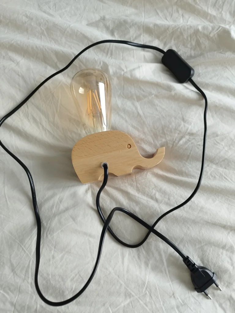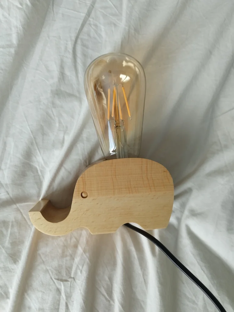 Petit lampe en bambou forme éléphant avec une belle ampoule qui diffuse une lumière douce pour la chambre de bébé/enfant