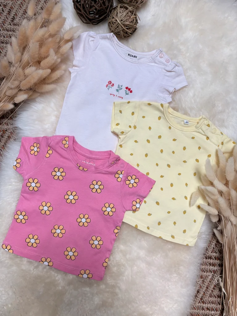 Lot de 3 t-shirts à manches courtes fleuris 1 kiabi 1 Zeeman 1 Primark 3 mois / 62cm Très bon état