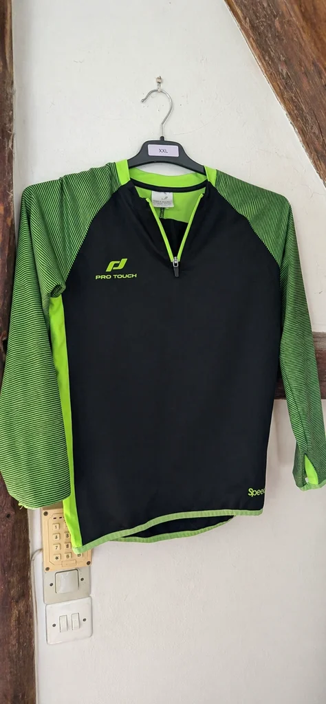 Haut de sport enfant taille 10/12 ans, marque Pro Touch ✔️ Idéal pour sport, running, foot, fitness ou école ✔️ Matière respirante et confortable ✔️ Fermeture zip au col ✔️ Couleurs noir et vert, style dynamique ✔️ Manches longues 👉 Très bon état, peu porté Parfait pour les activités sportives, léger et agréable à porter 👍 📏 Taille : 10/12 ans #sportenfant #vetementenfant #running #fitness #protouch #garcon #12ans #tenuesport