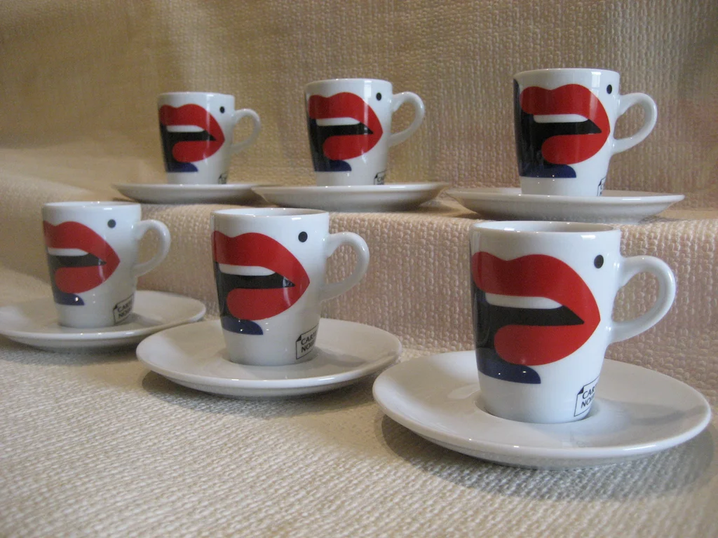 Magnifique Service à café 12 pièces " CARTE NOIRE " , de très belle qualité, comprenant : - 6 tasses + 6 soucoupes , illustration par Malika Favre, pour vos expressos courts et intenses, en porcelaine , fabrication française PILLIVUYT. Dimensions : - TASSE : hauteur : 7 cm - diamètre supérieur sans la queue : 5,5 cm - diamètre base : 4 cm - contenance ras-bord : 10 cl --- - SOUCOUPE : diamètre : 12,5 cm - épaisseur : 1,5 cm - *** NEUF, jamais servi. *** Possibilité d'envoi. *** Prix NON négociable.