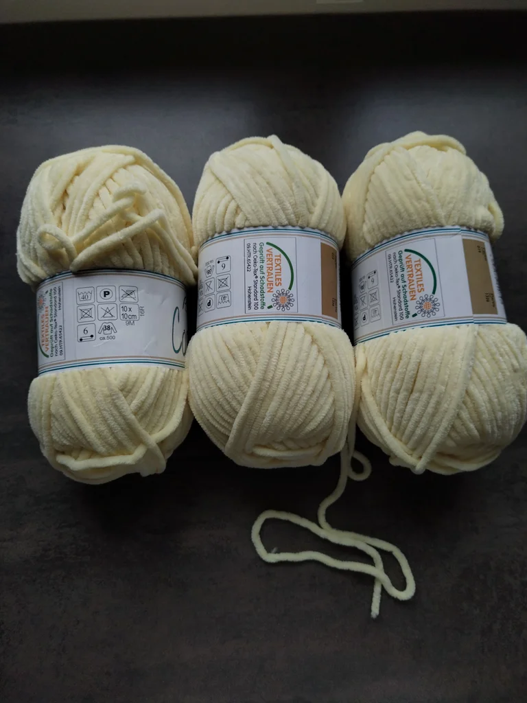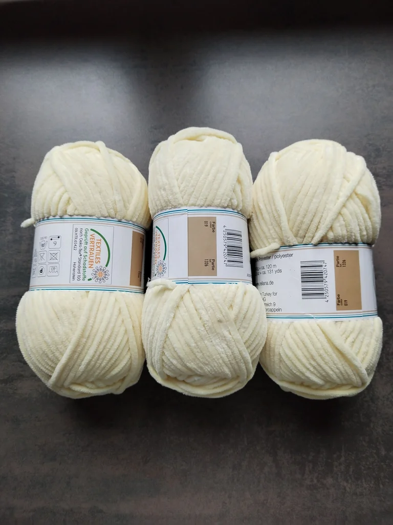 Lot de 3 pelotes de laine type "chenille" (velours), idéales pour des projets doux et cocooning. 📝 Caractéristiques détaillées : Matière : 100% Polyester (toucher ultra doux, effet velours). Poids/Longueur : 100g par pelote (soit 300g au total) / env. 120m par pelote. Couleur : Jaune très pâle (Coloris n°019). Bain (Lot) : 1326 (les 3 pelotes sont du même bain pour un rendu uniforme). Taille d'aiguilles/crochet recommandée : 6 mm. Certification : Oeko-Tex Standard 100 (testé sans substances nocives). 💡 Idéal pour : Parfait pour la confection d'amigurumis (peluches), de couvertures de bébé, de coussins doudous. Entretien : Lavage en machine à 40°C maximum. Ne pas repasser. Séchage à plat recommandé. État : Neuf avec étiquette. 📦 Envoi rapide et soigné. N'hésitez pas à consulter mes autres articles pour grouper les frais de port !