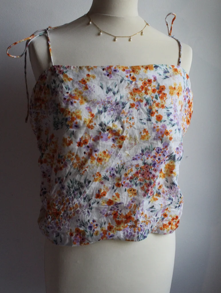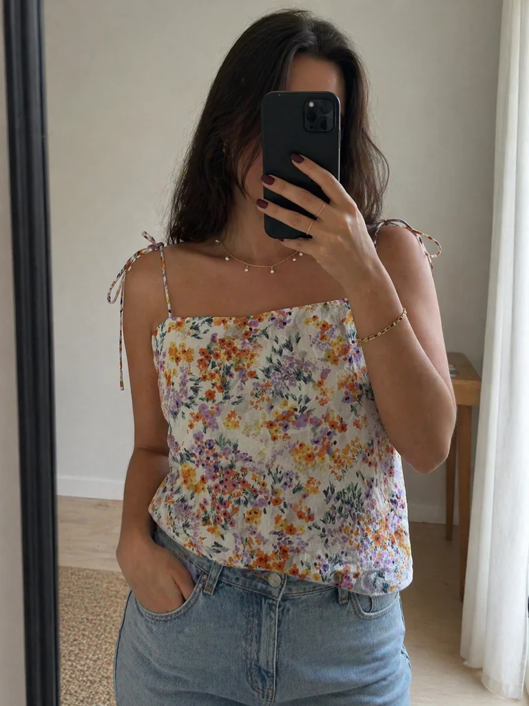 🌸 Top fleuri à bretelles fines – H&M (3) Ce joli top H&M aux motifs fleuris est parfait pour les beaux jours ! Léger et fluide, il se porte facilement avec un short, un jean ou une jupe. Son imprimé floral aux tons orangés, violets et verts sur fond blanc apporte une touche fraîche et estivale à votre look. ✨ Taille : XL/42 ✨ Couleur : Blanc à motifs fleuris (orange, violet, vert) ✨ Détails : Bretelles fines à nouer, coupe fluide, tissu léger ✨ Matière : 100% lin ✨ En très bon état ✨ Envoi rapide et soigné 🌼 Pour toutes questions, n'hésitez pas à m'envoyer un message !