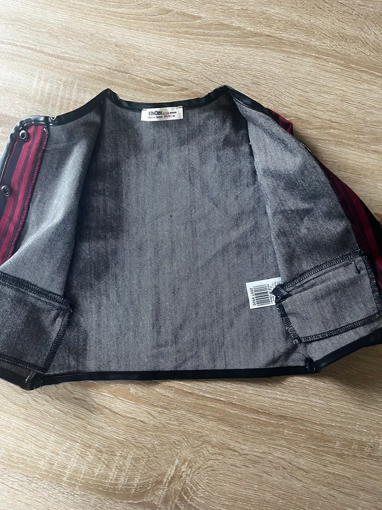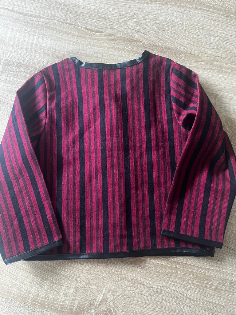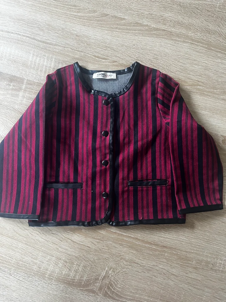 • Marque : Cikoby • Taille : 18/24 mois (86/92 cm) • Couleurs : Bordeaux / Vin et Noir • Matière : 95% Coton, 5% Élasthanne Boutons a pressions #vestefille #vestegarcon #cikoby #taille2ans #18mois #24mois #chic #ceremonie #lookrock #rayures #bordeaux #modeenfant