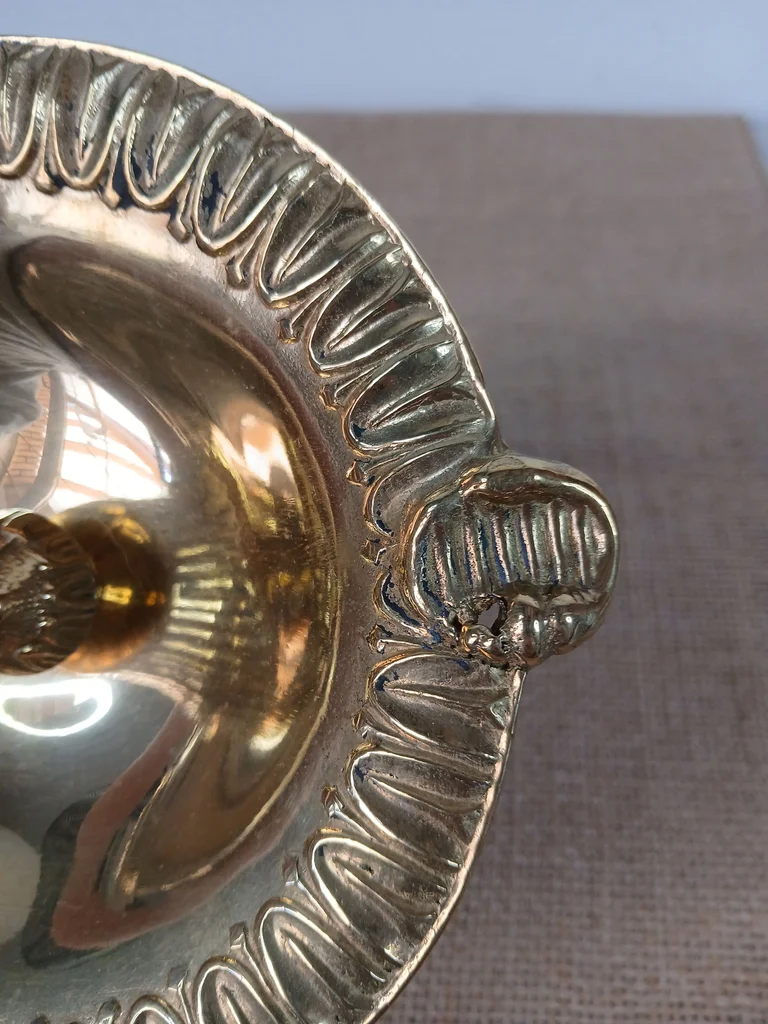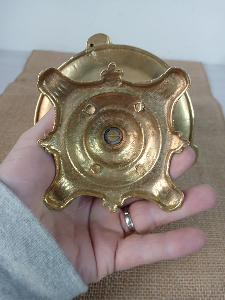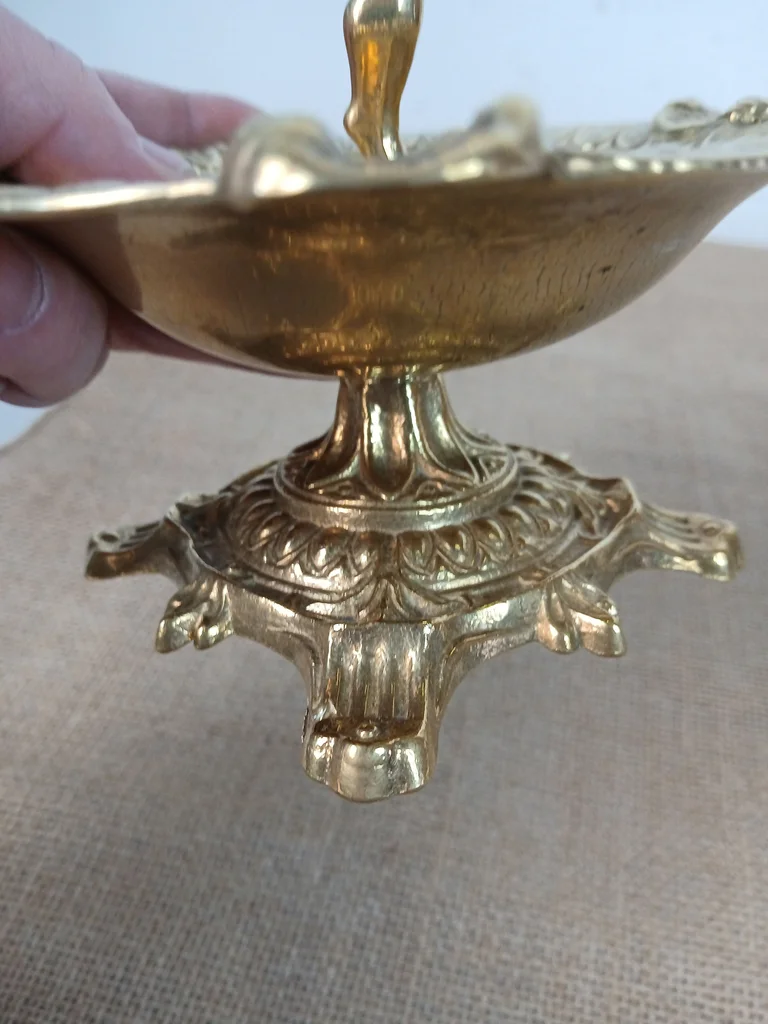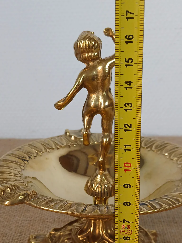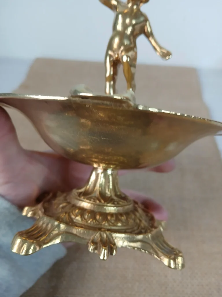 Jolie cendrier chérubin En laiton style bronze doré De 16 cm hauteur De 15.5 cm Diamètre Poids 630 gr Ancien en bon état Usure du temp Petit défaut usure ( petit trou )