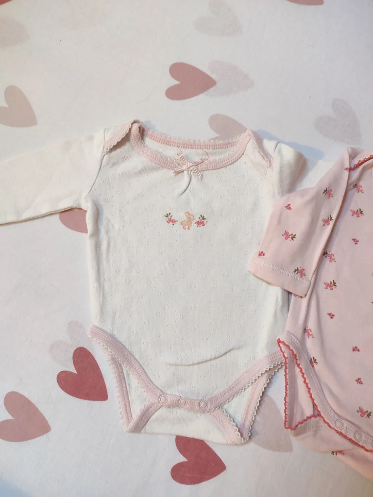 🌸 Adorable lot de 2 bodies manches longues de la marque Sergent Major. 🌸 Couleurs douces dans les tons blanc et rose pâle. 🌸 Avec de jolis détails floraux et petits nœuds. 🎀 🌸 Pression à l'entrejambe pour un habillage facile. 🌸 Taille 1 mois. 🌸 Très bon état. 🌸 N'hésitez pas à aller faire un tour sur mon dressing, plein d'articles bébé/enfant. 🌸