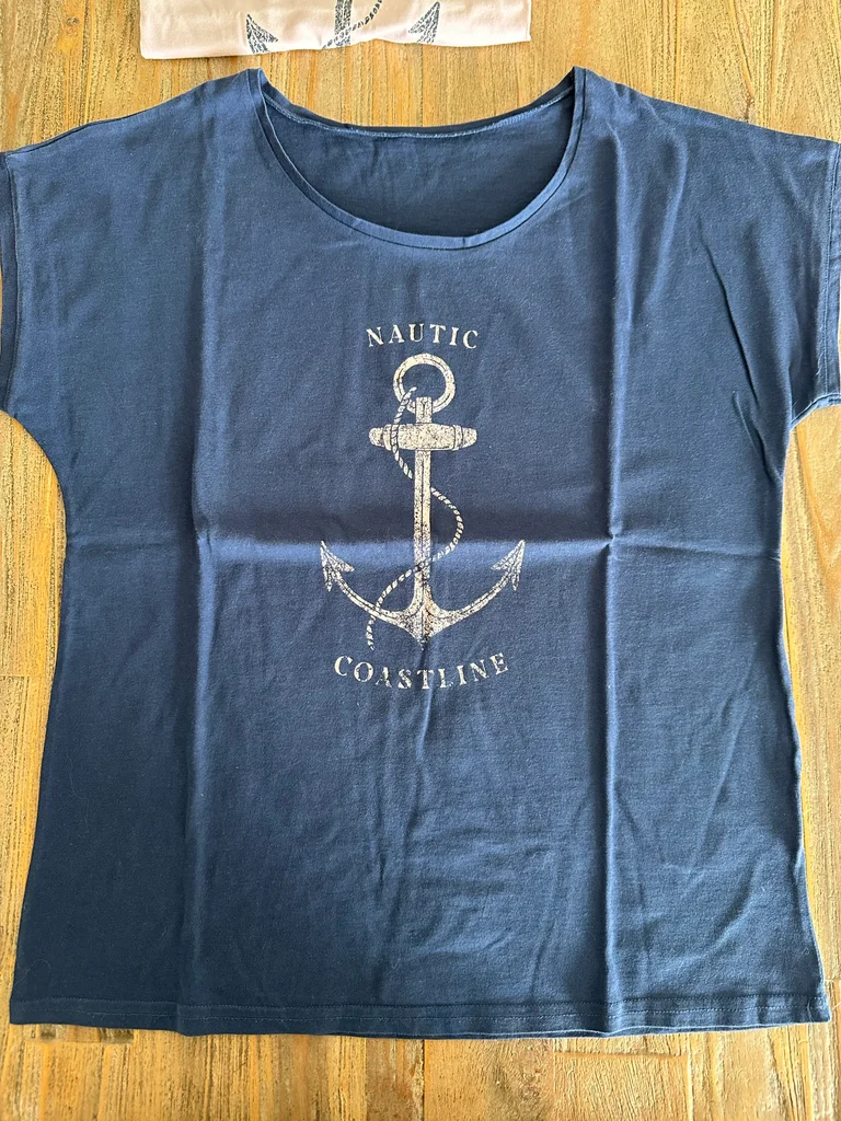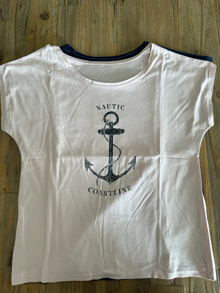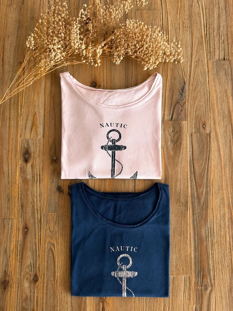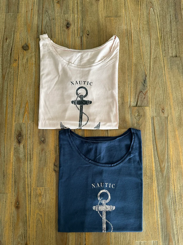 Longueur 61cm Aisselle 47/48cm Craquez pour ce duo de t-shirts au style nautique, parfaits pour un look décontracté avec une touche bord de mer 🌊 🤍💙 Détails du lot : • 1 t-shirt rose clair + 1 t-shirt bleu marine • Motif ancre avec inscription “Nautic” • Coupe confortable et facile à porter • Matière douce, idéale au quotidien ✨ À porter avec un jean, un short ou même une jupe pour un style casual chic sans effort.