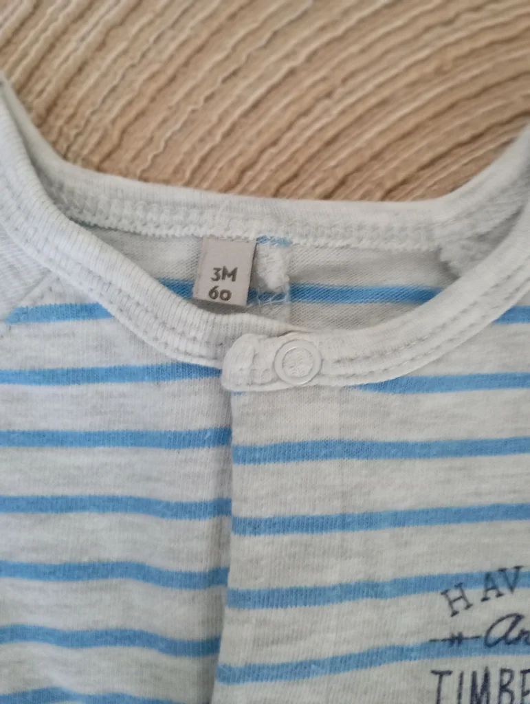 Pyjama fin taille 3 mois de la marque Timberland en très bon état