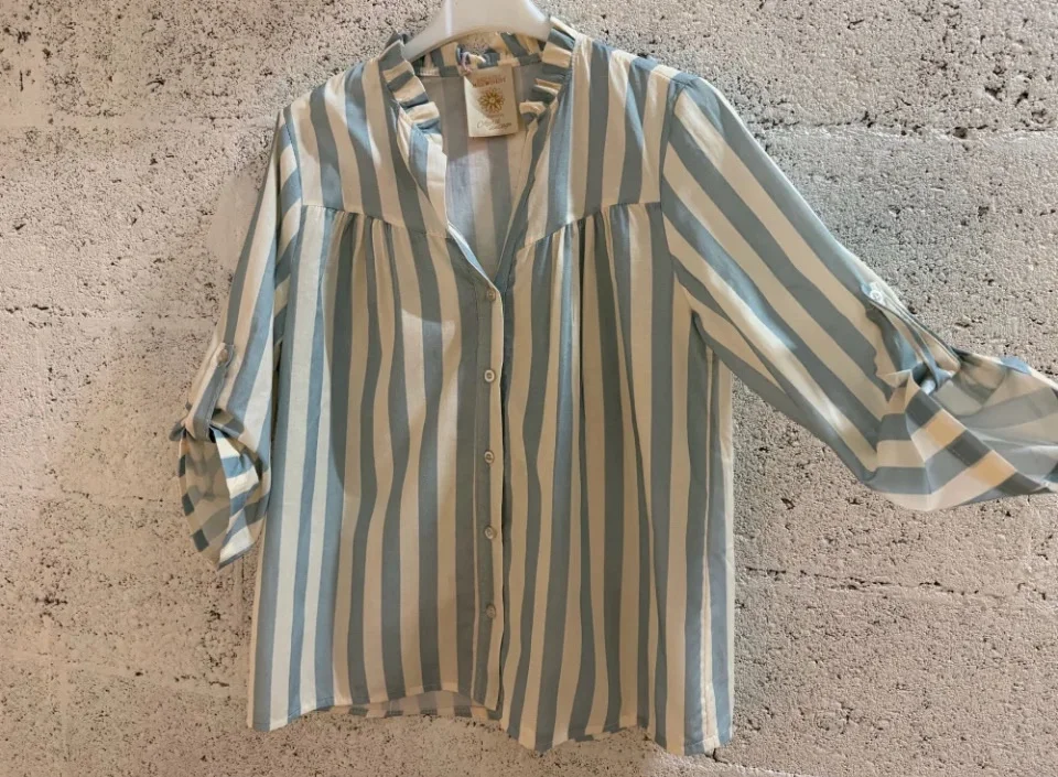 Taille unique #chemise #chemiselegere #chemisecoton #chemiseraye #chemisebleu #chemisefemme #camiseta #madeinitaly #italia