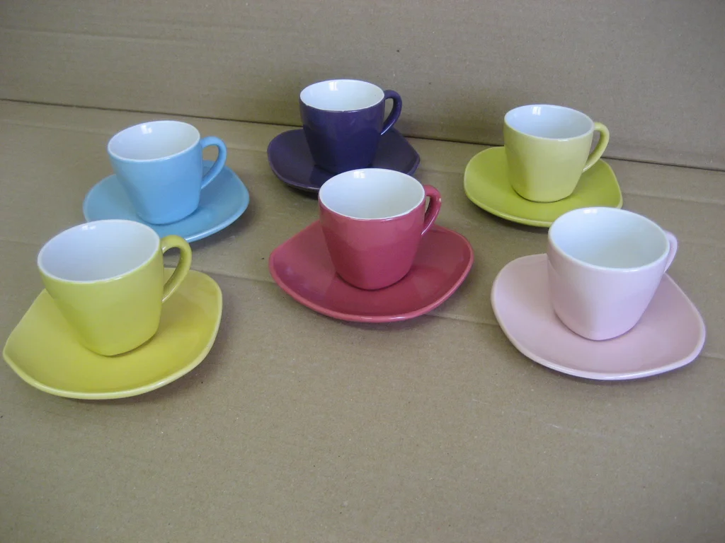 Lot de 6 tasses et 6 sous-tasses , vintage, aux couleurs du Formica | Opla