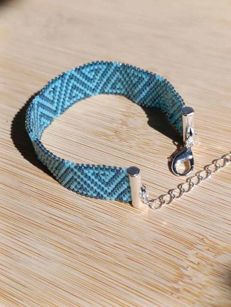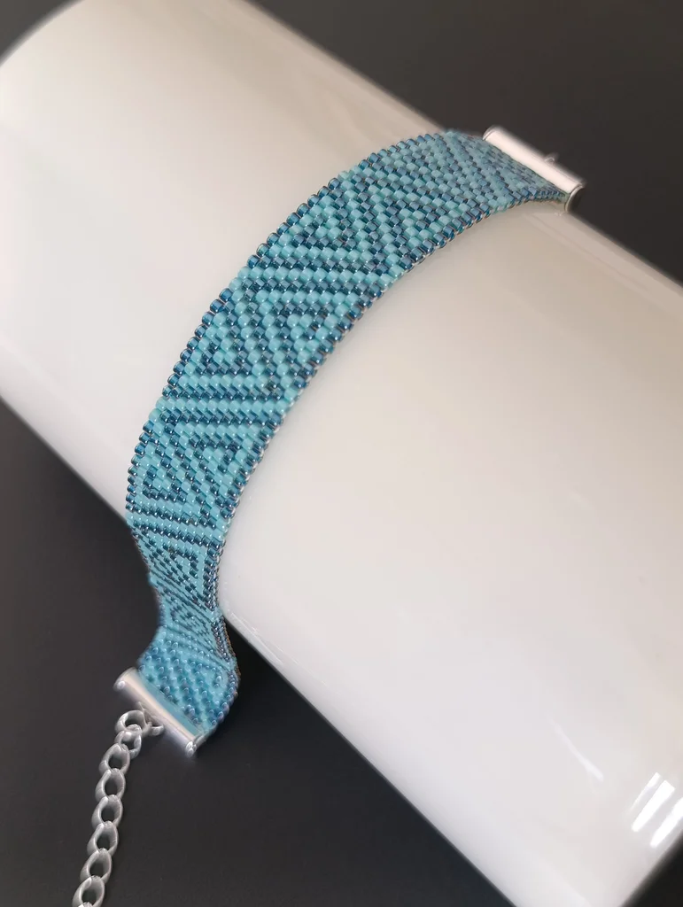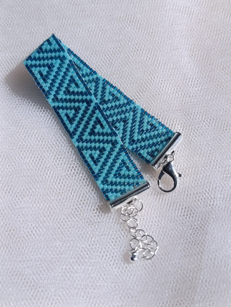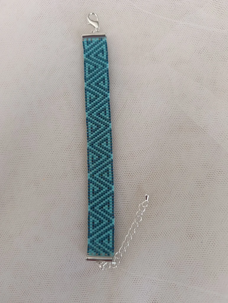 Bracelet fait main en tissage de perles miyuki delica vert foncé et turquoise ajustable avec chaînette