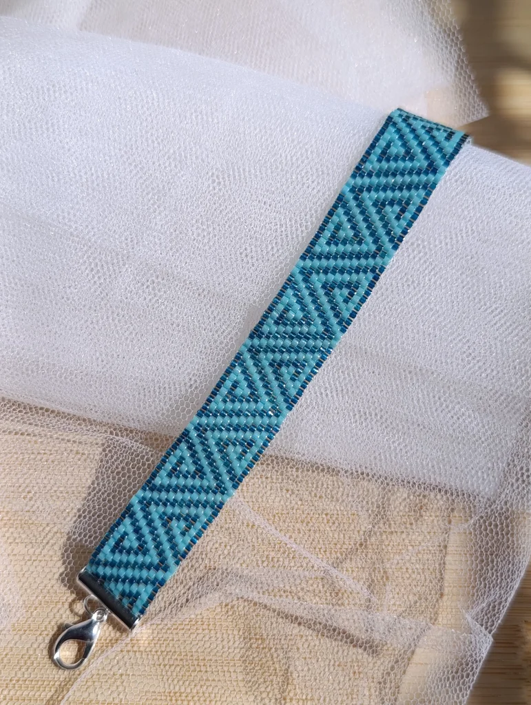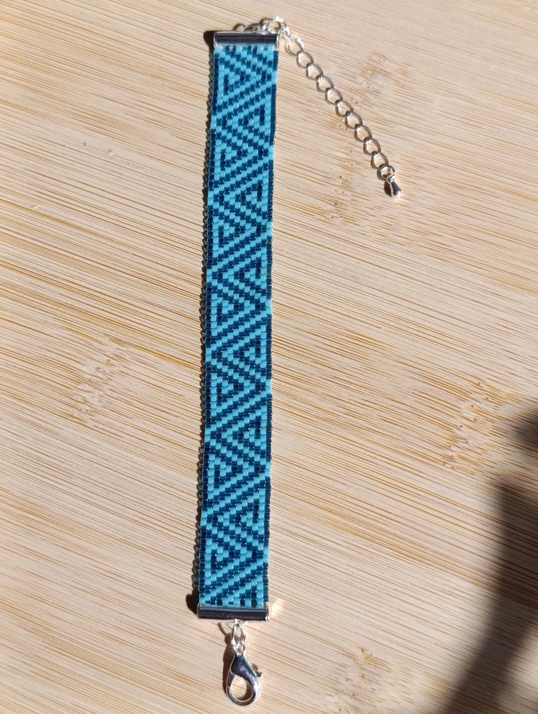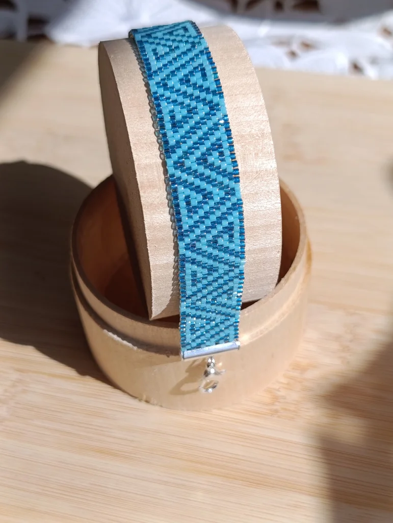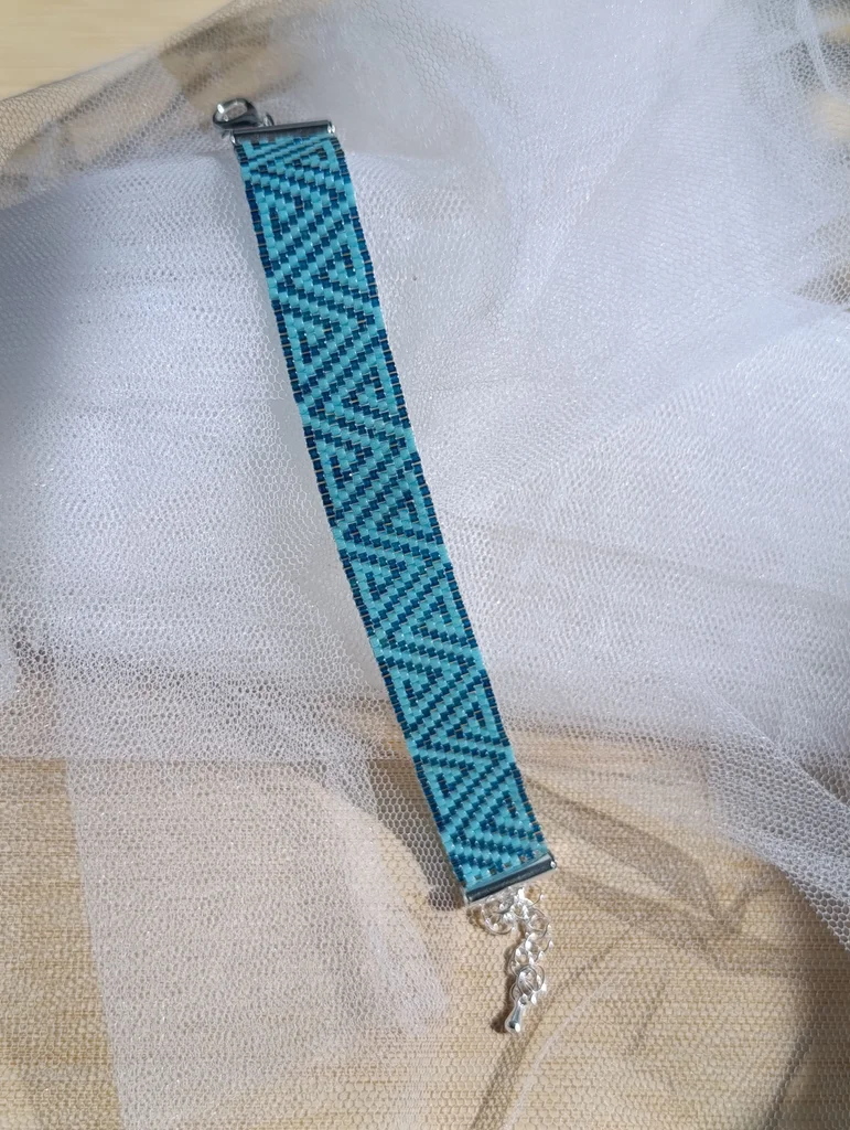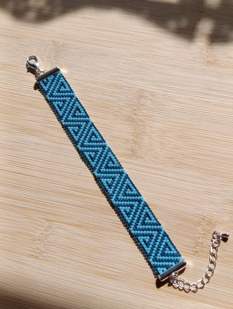 Bracelet fait main en tissage de perles miyuki delica vert foncé et turquoise ajustable avec chaînette