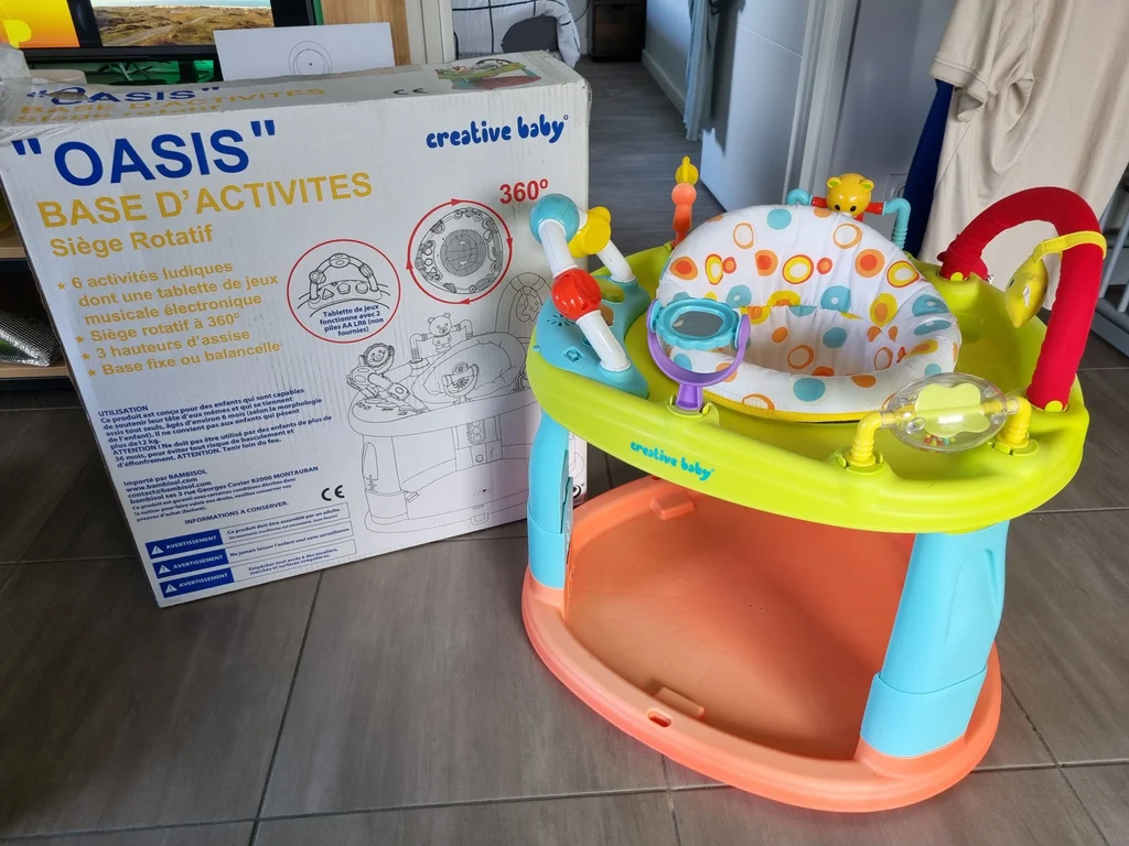 BAMBISOL OASIS | Table d’Activité & d’Éveil Bébé | Siège Rotatif 360° | 3 Hauteurs | Fixe ou Balancelle | Tablette Musicale, Hochets & Miroir | Sauteur Bébé | à partir de 6 Mois | Multicolore Légère traces d'usures Acheter 64.90 sur Amazon il y a quelques mois