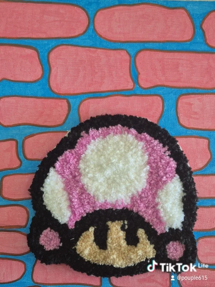 Toadette de mario kart en punch needle laine acrylique nettoyage a sec