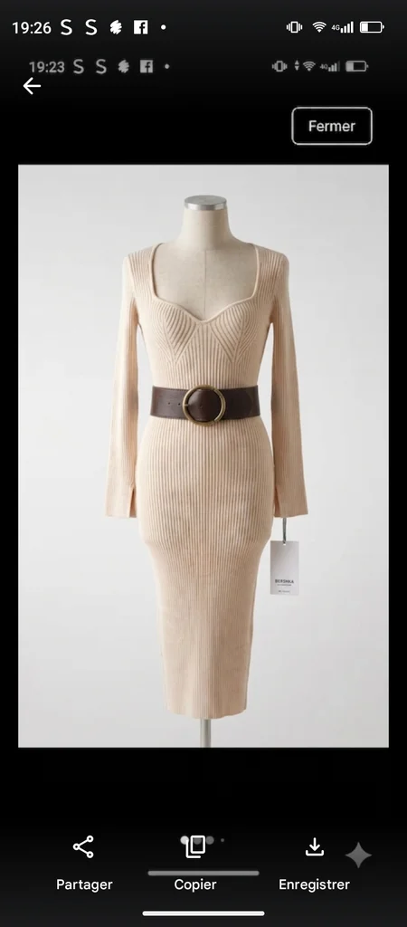 Très jolie robe de couleur beige taille L extensible très longues marque Bershka vendu sans ceinture