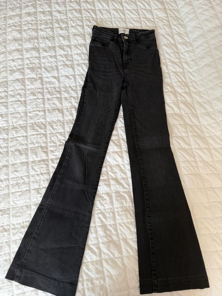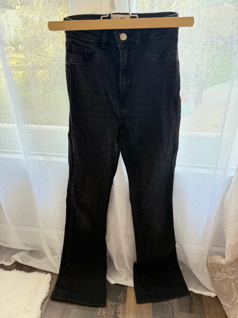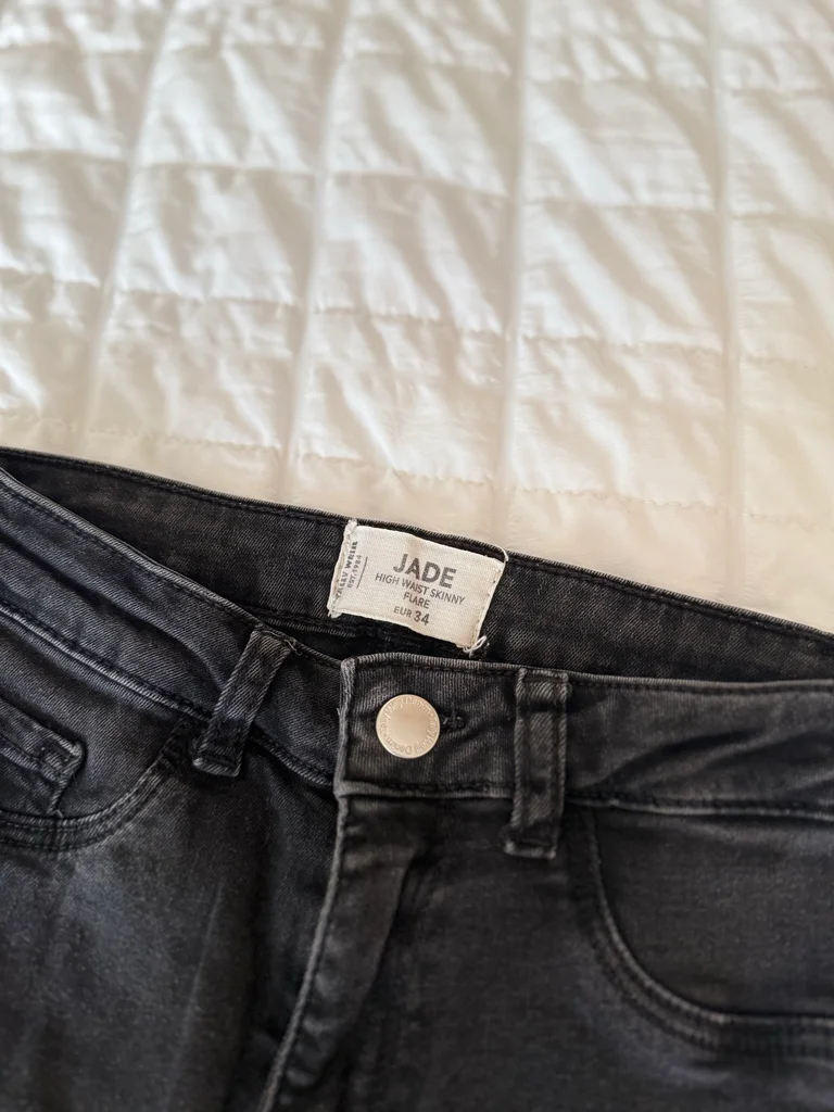 🌸Jean noir à pattes d’éléphant collection Jade Tally Weijl🌸 📏Taille parfaitement pour un XS/34. ✨Porté peu de fois. En bon état dans l’ensemble sauf une petite marque en haut derrière mais je ne sais pas si elle est apparue ou si c’est naturel (voir dernière photo). ☀️Pour plus de photos ou de renseignements, ne surtout pas hésitez à me demander☀️