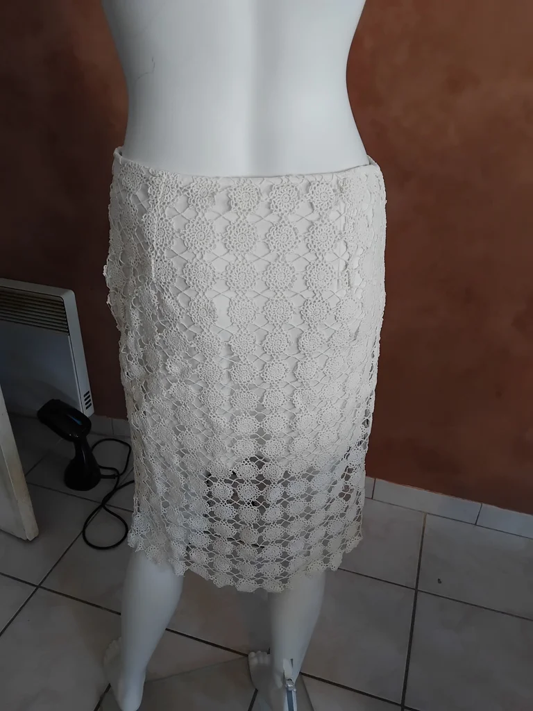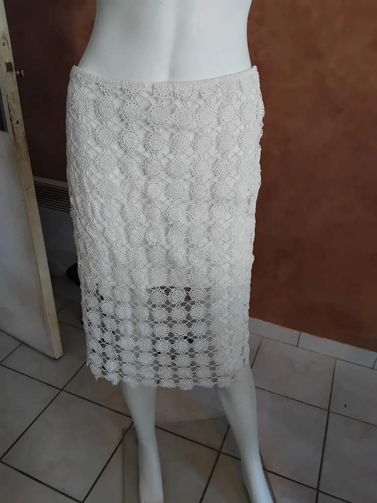 Belle jupe, petit défaut une fleur brodée non reliée, un point de couture et c’est réglé