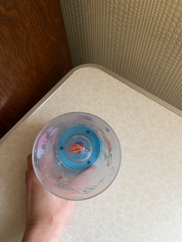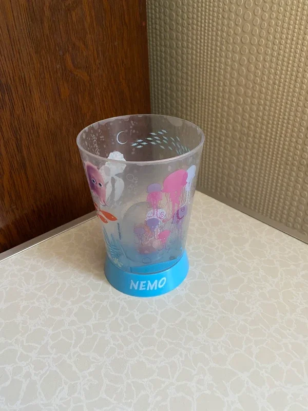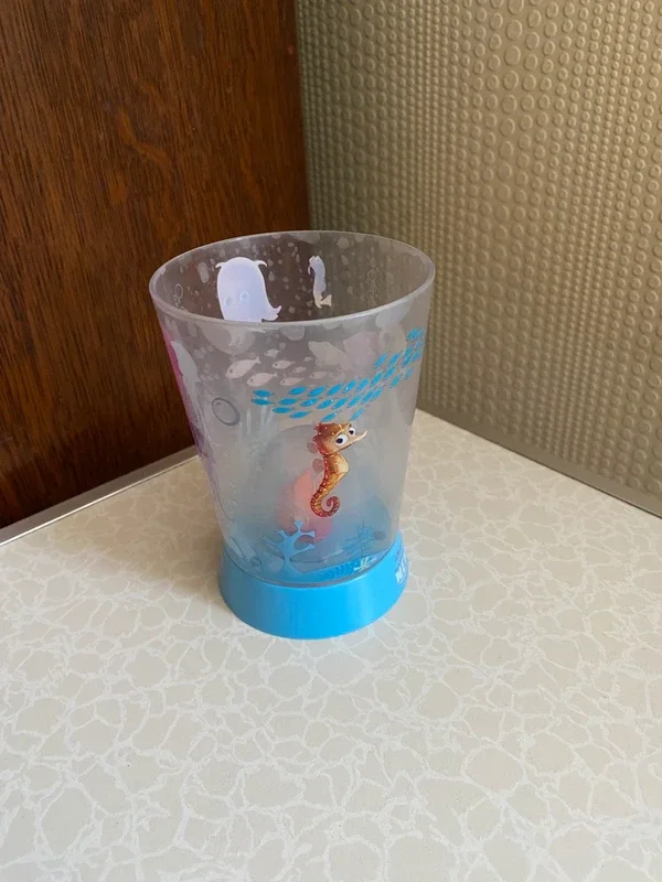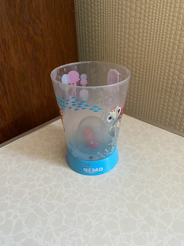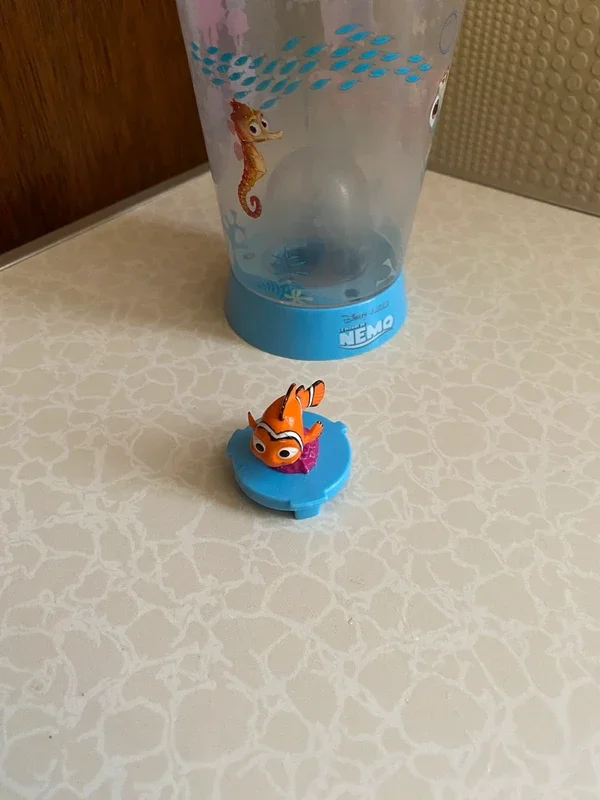 Gobelet en plastique transparent décoré sur le thème de Nemo Avec petite figurine intégrée à l'intérieur du verre (effet décoratif très sympa). Idéal pour enfant ou collection Disney. Bon état général, quelques traces d'usage légères (voir photos). Détails : Marque Disney Pixar • Matière : plastique • Motif : Nemo / univers marin • Couleur: transparent avec base bleue Prix: 2€