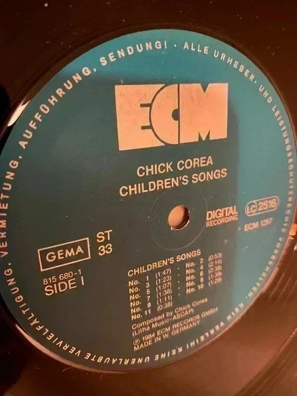"Children's Songs" est un album du pianiste de jazz Chick Corea, enregistré en juillet 1983 et paru chez ECM l'année suivante. Le trio comprend la violoniste Ida Kavafian et le violoncelliste Fred Sherry. Label:ECM Records – ECM 1267, ECM Records – 815 680-1 Format:Vinyle, LP, Album, Stereo Pays:Germany Sortie:1984 Genre:Jazz, Classical Style:Contemporary Etat: Pochette VG; disque VG (Usure des sillons notable et légères rayures. Le bruit de surface ne submergera pas la musique) Envoi rapide et soigné