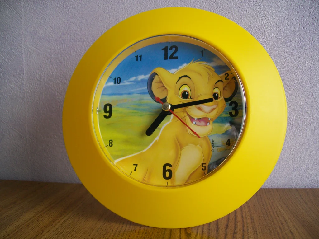 Horloge décorative représentant le personnage Simba du Roi Lion.
