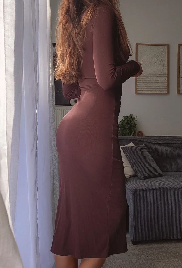 Robe ajourée effet côtelée marron chocolat taupe casual chic, col bateau bardot décolleté épaules dénudées sexy, manches longues cintrées. Découpe cut-out ventre osé flatteur, fente côté jambe slit sexy, coupe moulante fuselée galbe silhouette wrap torsadée. Style urban rock casual soirée, idéal brunch city, dîner romantique, sortie habillée effortless. Alternative robe côtelée marron cut-out, bodycon ajourée manches longues, robe sexy côtelée fendue, wrap dress casual chic. Associer bottines chelsea, escarpins mules, bijoux dorés massifs, collier chaîne, boucles créoles, blazer cuir. Seconde main côtelée marron cut-out, style urban sexy ultra recherché. 📏 Taille : XS estimé sans étiquette 📸 Modèle : 1m68 📦 Please leave me a nice review if everything is okay! ✨📬🤍